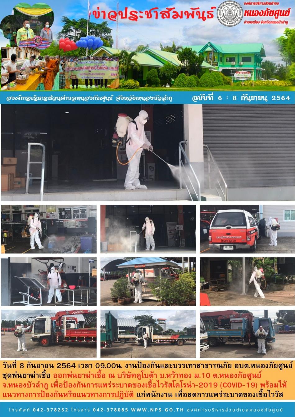 วันที่ 8 กันยายน 2564 เวลา 09.00น. งานป้องกันและบรรเทาสาธารณภัย อบต.หนองภัยศูนย์ ชุดพ่นยาฆ่าเชื้อ ออกพ่นยาฆ่าเชื้อ ณ บริษัทคูโบต้า บ.หว้าทอง ม.10 ต.หนองภัยศูนย์ จ.หนองบัวลำภู เพื่อป้องกันการแพร่ระบาดของเชื้อไวรัสโคโรน่า-2019... [8 กันยายน 2564]