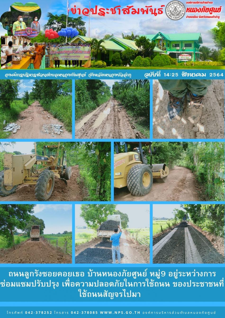 ถนนลูกรังซอยคอยเธอ บ้านหนองภัยศูนย์ หมู่9 อยู่ระหว่างการซ่อมแซมปรับปรุง เพื่อความปลอดภัยในการใช้ถนน ของประชาชนที่ใช้ถนนสัญจรไปมา [25 สิงหาคม 2564]