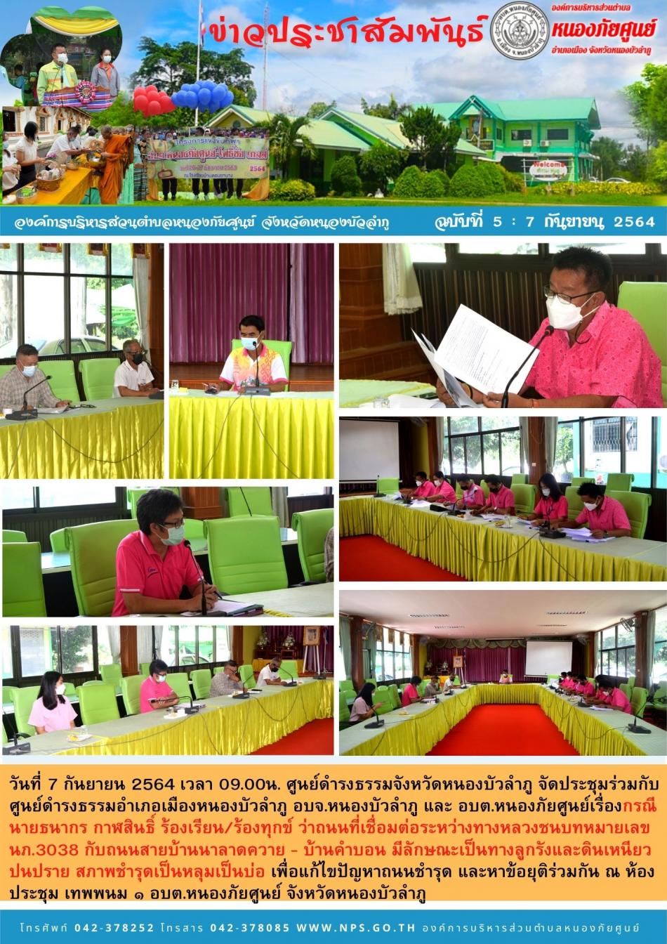 วันที่ 7 กันยายน 2564 เวลา 09.00น. ศูนย์ดำรงธรรมจังหวัดหนองบัวลำภู จัดประชุมร่วมกับ ศูนย์ดำรงธรรมอำเภอเมืองหนองบัวลำภู อบจ.หนองบัวลำภู และ อบต.หนองภัยศูนย์เรื่องกรณี นายธนากร กาฬสินธิ์ ร้องเรียน/ร้องทุกข์... [7 กันยายน 2564]