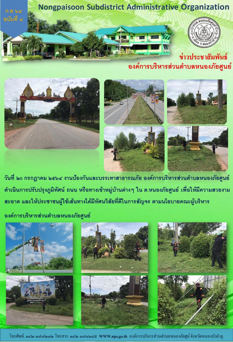 วันที่ ๒o กรกฎาคม ๒๕๖๔ งานป้องกันและบรรเทาสาธารณภัย องค์การบริหารส่วนตำบลหนองภัยศูนย์ ดำเนินการปรับปรุงภูมิทัศน์ ถนน หรือทางเข้าหมู่บ้านต่างๆ ใน ต.หนองภัยศูนย์ เพื่อให้มีความสวยงาม สะอาด... [20 กรกฎาคม 2564]
