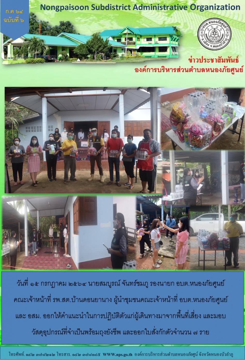 วันที่ ๒o กรกฎาคม ๒๕๖๔ นายสมบูรณ์ จันทร์ชมภู รองนายก อบต.หนองภัยศูนย์ กองสาธารณสุขและสิ่งแวดล้อม รพ.สต.ดอนยานาง และ อสม.บ้านนาลาดควาย ร่วมติดตามเยี่ยมบ้าน ให้กำลังใจผู้กักตัว จำนวน ๑๑ ราย... [21 กรกฎาคม 2564]