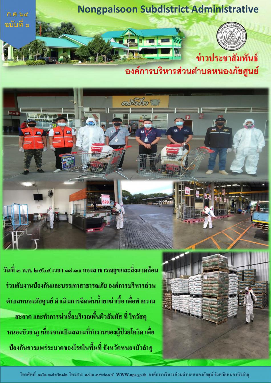 วันที่ ๓ ก.ค. ๒๕๖๔ เวลา ๑๘.๓o กองสาธารณสุขและสิ่งแวดล้อม ร่วมกับงานป้องกันและบรรเทาสาธารณภัย องค์การบริหารส่วนตำบลหนองภัยศูนย์ ดำเนินการฉีดพ่นน้ำยาฆ่าเชื้อ เพื่อทำความสะอาด และทำการฆ่าเชื้อบริเวณพื้นผิวสัมผัส... [5 กรกฎาคม 2564]