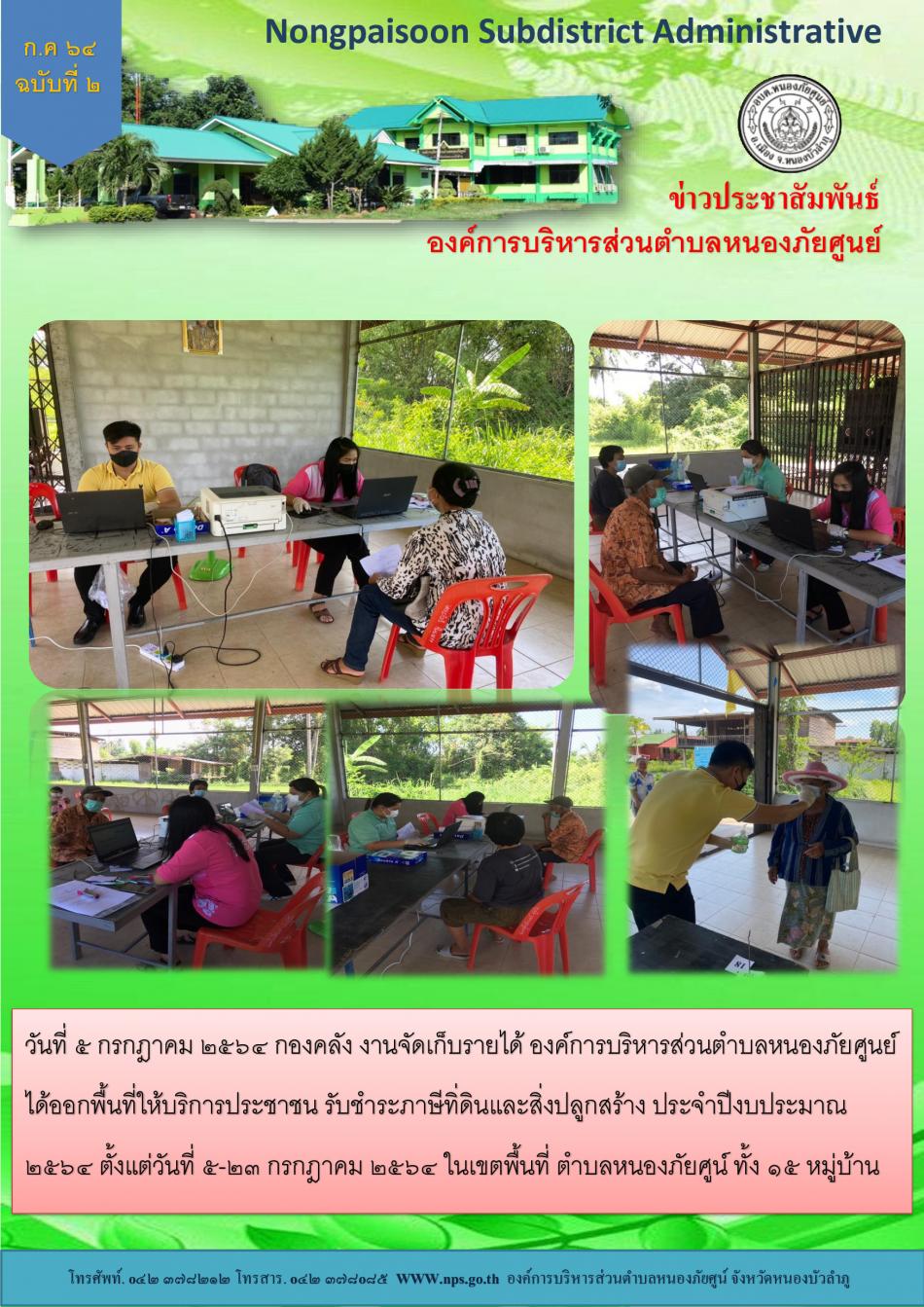 วันที่ ๕ กรกฎาคม ๒๕๖๔ กองคลัง งานจัดเก็บรายได้ องค์การบริหารส่วนตำบลหนองภัยศูนย์ได้ออกพื้นที่ให้บริการประชาชน รับชำระภาษีทิ่ดินและสิ่งปลูกสร้าง ประจำปีงบประมาณ ๒๕๖๔ ตั้งแต่วันที่ ๕-๒๓ กรกฎาคม ๒๕๖๔ ในเขตพื้นที่... [6 กรกฎาคม 2564]