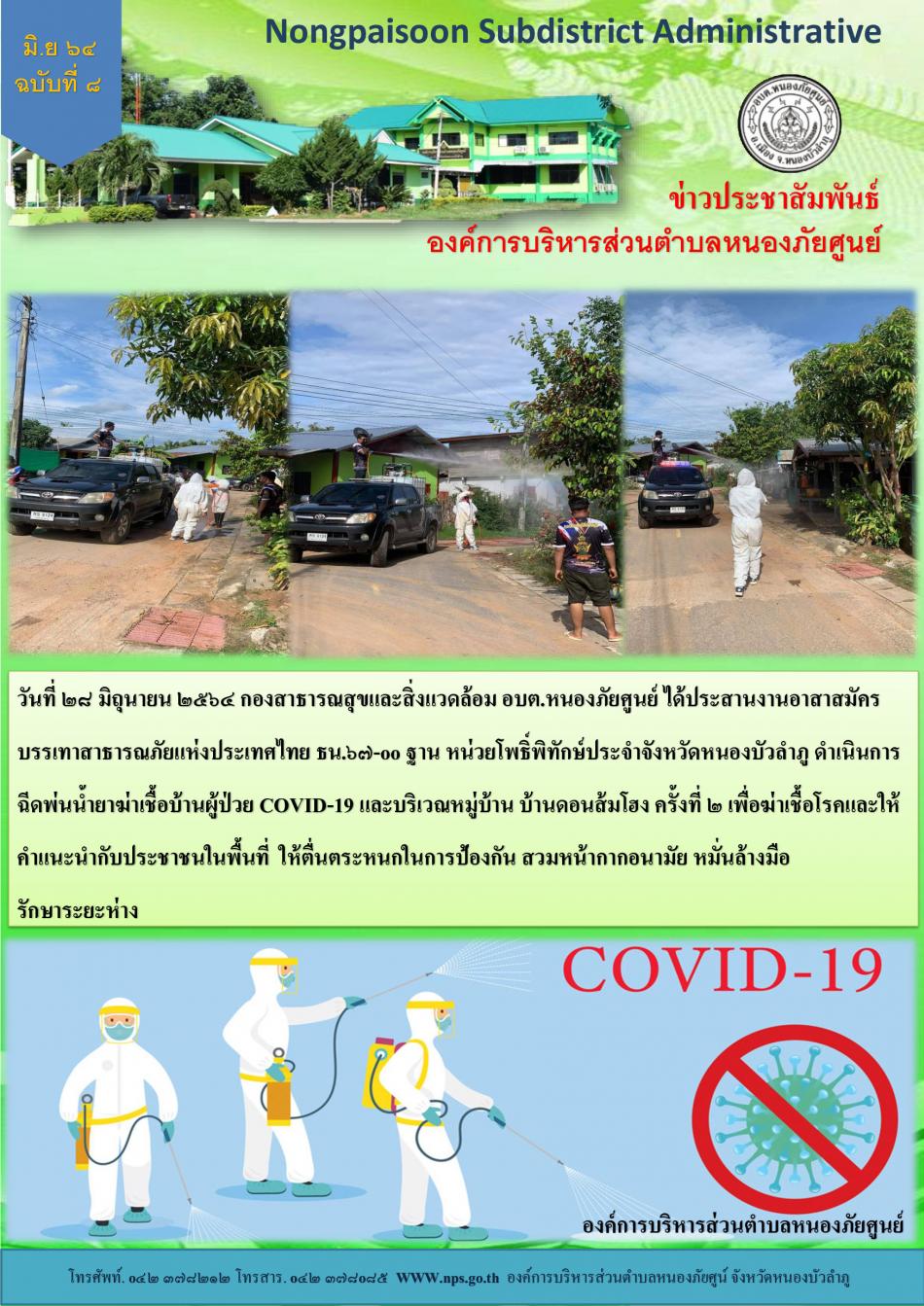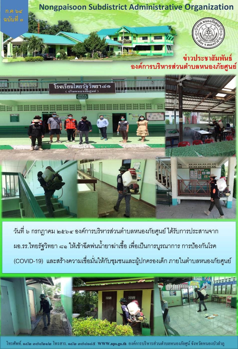 วันที่ ๖ กรกฎาคม ๒๕๖๔ องค์การบริหารส่วนตำบลหนองภัยศูนย์ ได้รับการประสานจาก ผอ.รร.ไทยรัฐวิทยา ๘๑ ให้เข้าฉีดพ่นน้ำยาฆ่าเชื้อ เพื่อเป็นการบูรณาการ การป้องกันโรค (COVID-19) ... [7 กรกฎาคม 2564]