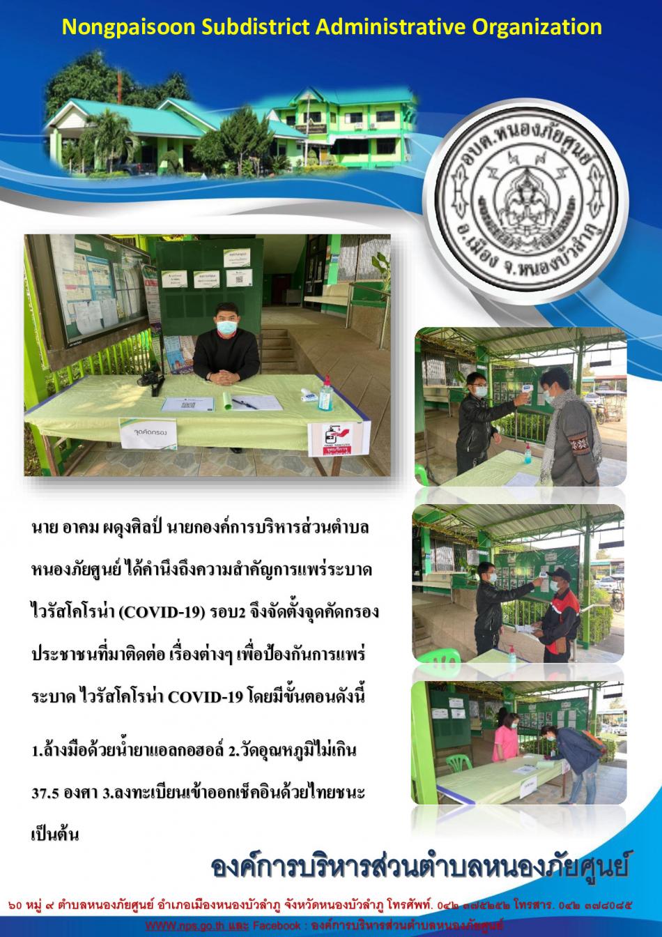 นาย อาคม ผดุงศิลป์ นายกองค์การบริหารส่วนตำบลหนองภัยศูนย์ ได้คำนึงถึงความสำคัญการแพร่ระบาดไวรัสโคโรน่า (COVID-19) รอบ2 จึงจัดตั้งจุดคัดกรอง ประชาชนที่มาติดต่อ เรื่องต่างๆ เพื่อป้องกันการแพร่ระบาด ไวรัสโคโรน่า COVID-19...