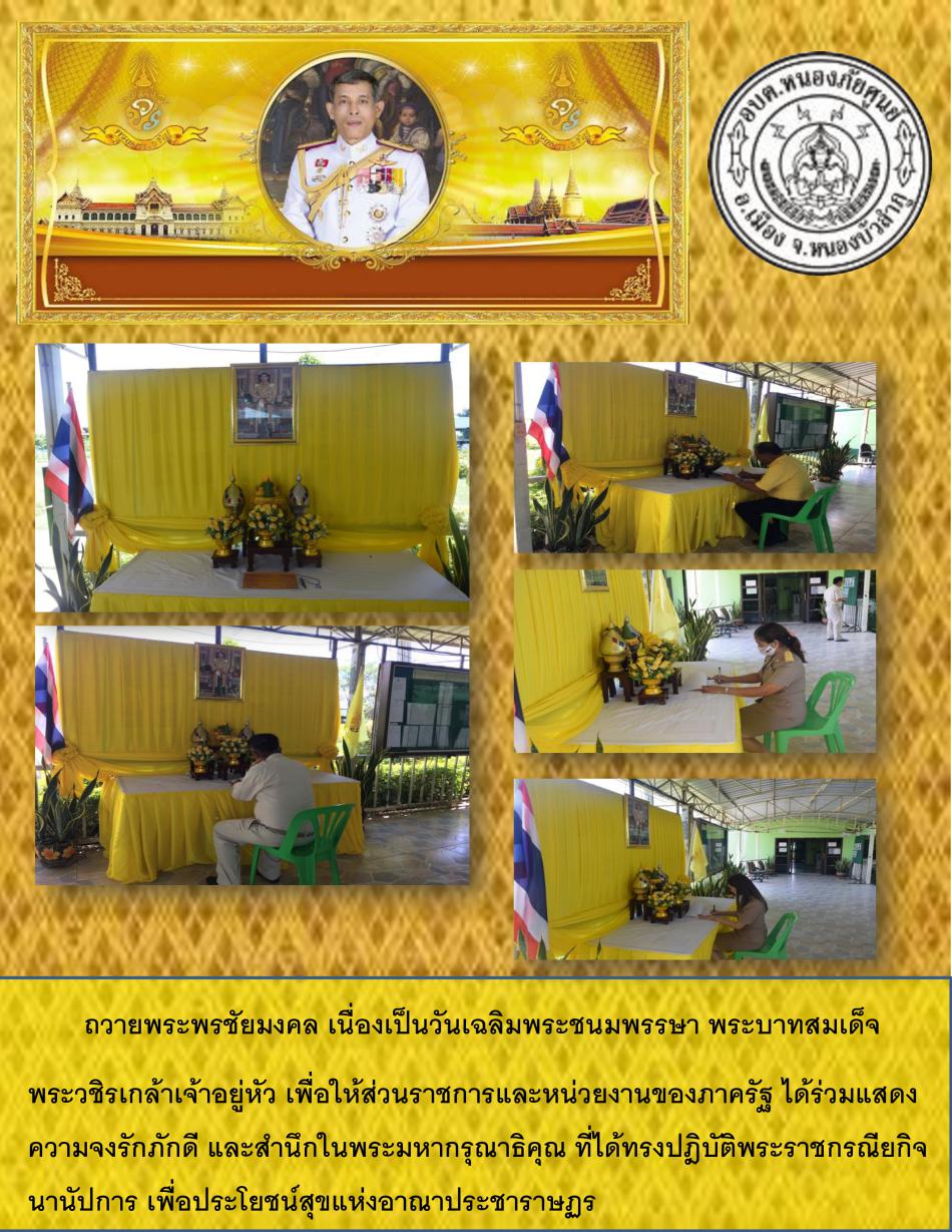 วันที่ 28 กรกฎาคม 2563 นายสมบูรณ์ จันทร์ชมภู รองนายกอบต.หนองภัยศูนย์ นำผู้บริหาร ข้าราชการ เข้าร่วมพิธีวางพานพุ่มและจุดเทียนถวายพระพรชัยมงคล เนื่องในวันเฉลิมพระชนมพระบาทสมเด็จพระเจ้าอยู่หัวครบ 68 พรรษา ณ...