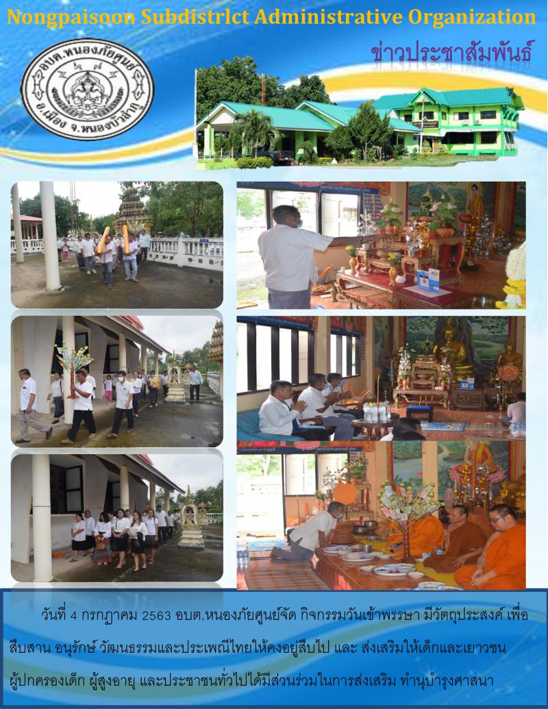 โครงการจัดกิจกรรมวันเข้าพรรษา องค์การบริหารส่วนตำบลหนองภัยศูนย์ อำเภอเมืองหนองบัวลำภู จังหวัดหนองบัวลำภู ณ วันที่ 4 กรกฏาคม 2563 ที่ผ่านมา ๑. เพื่อสืบสาน อนุรักษ์ วัฒนธรรมและประเพณีไทยให้คงสืบไป ๒....