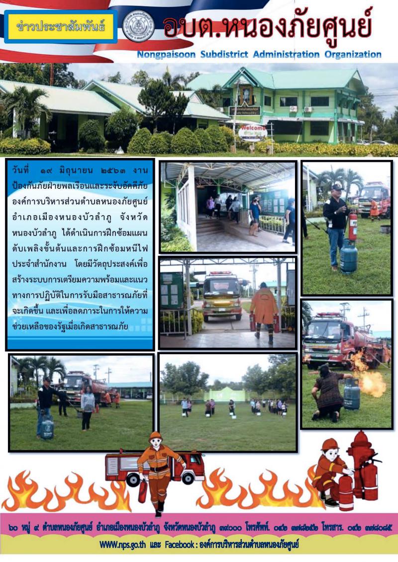 วันที่ ๑๙ มิถุนายน ๒๕๖๓ งานป้องกันภัยฝ่ายพลเรือนและระงับอัคคีภัยองค์การบริหารส่วนตำบลหนองภัยศูนย์ อำเภอเมืองหนองบัวลำภู ได้ดำเนินการฝึกซ้อมแผนดับเพลิงขั้นต้นและฝึกซ้อมหนีไฟประจำสำนักงาน...