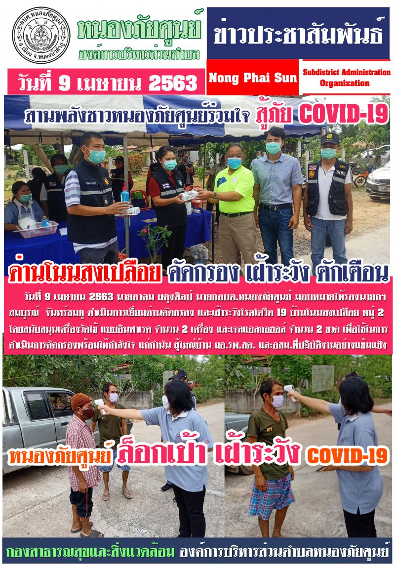 วันที่ 9 เมษายน 2563 นายอาคม ผดุงศิลป์ นายกอบต.หนองภัยศูนย์ มอบหมายให้รองนายกสมบูรณ์ จันทร์ชมภู ดำเนินการเยี่ยมด่านคัดกรอง ปละเฝ้าระวังโรคโควิด19 บ้านโนนสงเปือย หมู่2