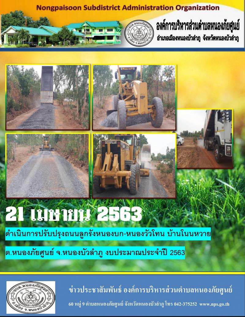 ดำเนินการปรับปรุงถนนลูกรังหนองบก-หนองวัวโทน บ้านโนนหวาย ต.หนองภัยศูนย์ จ.หนองบัวลำภู งบประมาณประจำปี 2563