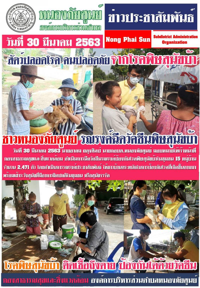 วันที่ 30 มีนาคม 2563 ชาวหนองภัยศูนย์ รณรงค์ฉีดวัคซีนพิษสุนัขบ้า