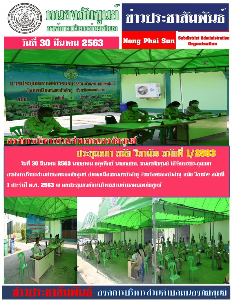 วันที่ 30 มีนาคม 2563 นายอาคม ผดุงศิลป์ นายกอบต. หนองภัยศูนย์ ได้จัดการประชุมสภาองค์การบริหารส่วนตำบลหนองภัยศูนย์ อำเภอเมืองหนองบัวลำภู จังหวัดหนองบัวลำภู สมัย วิสามัญ สมัยที่ 1 ประจำปี พ.ศ. 2563 ณ...