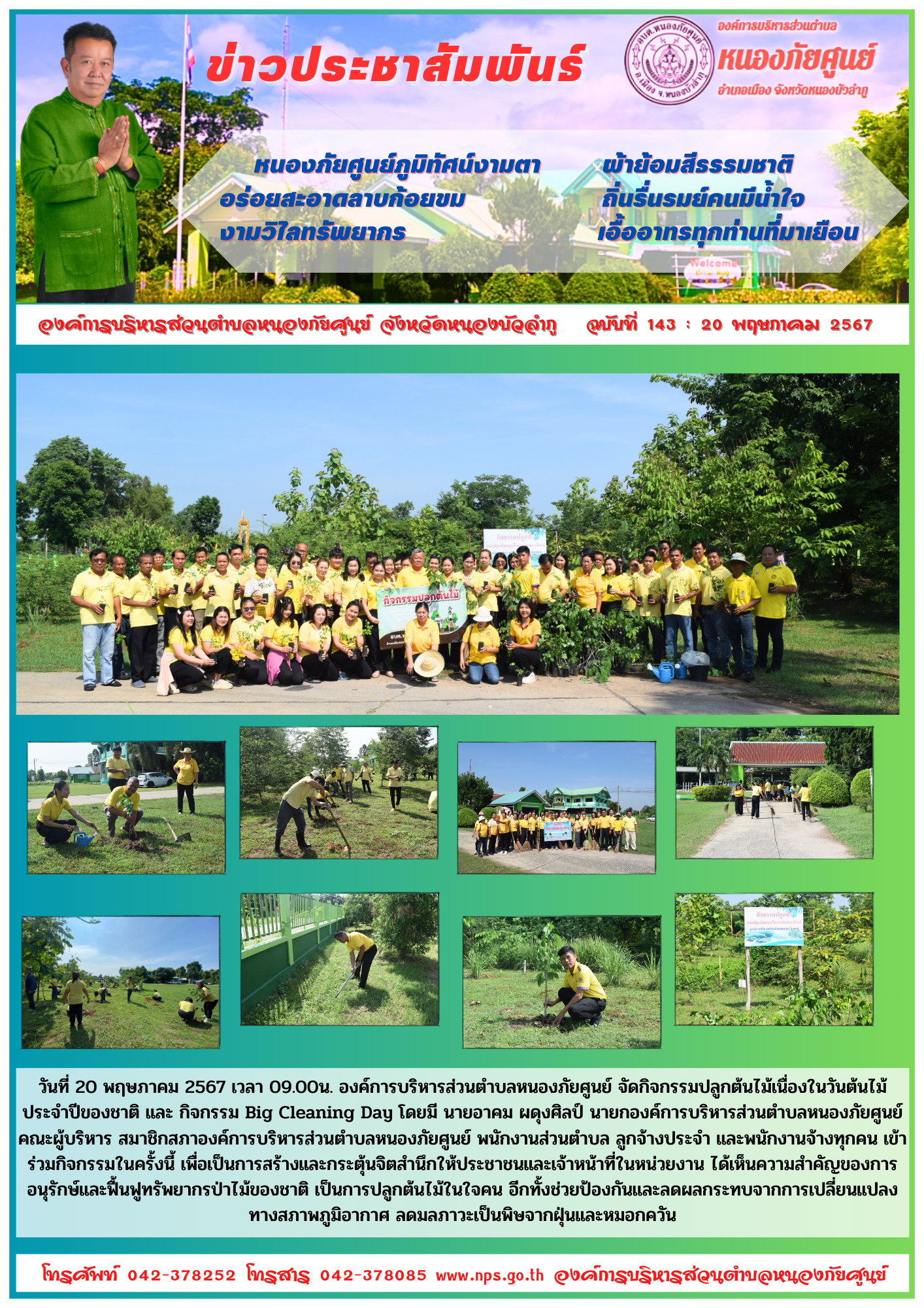 วันที่ 20 พฤษภาคม 2567 เวลา 09.00น. องค์การบริหารส่วนตำบลหนองภัยศูนย์ จัดกิจกรรมปลูกต้นไม้เนื่องในวันต้นไม้ประจำปีของชาติ และ กิจกรรม Big Cleaning Day โดยมี นายอาคม ผดุงศิลป์ นายกองค์การบริหารส่วนตำบลหนองภัยศูนย์ คณะผู้บริหาร... [20 พฤษภาคม 2567]