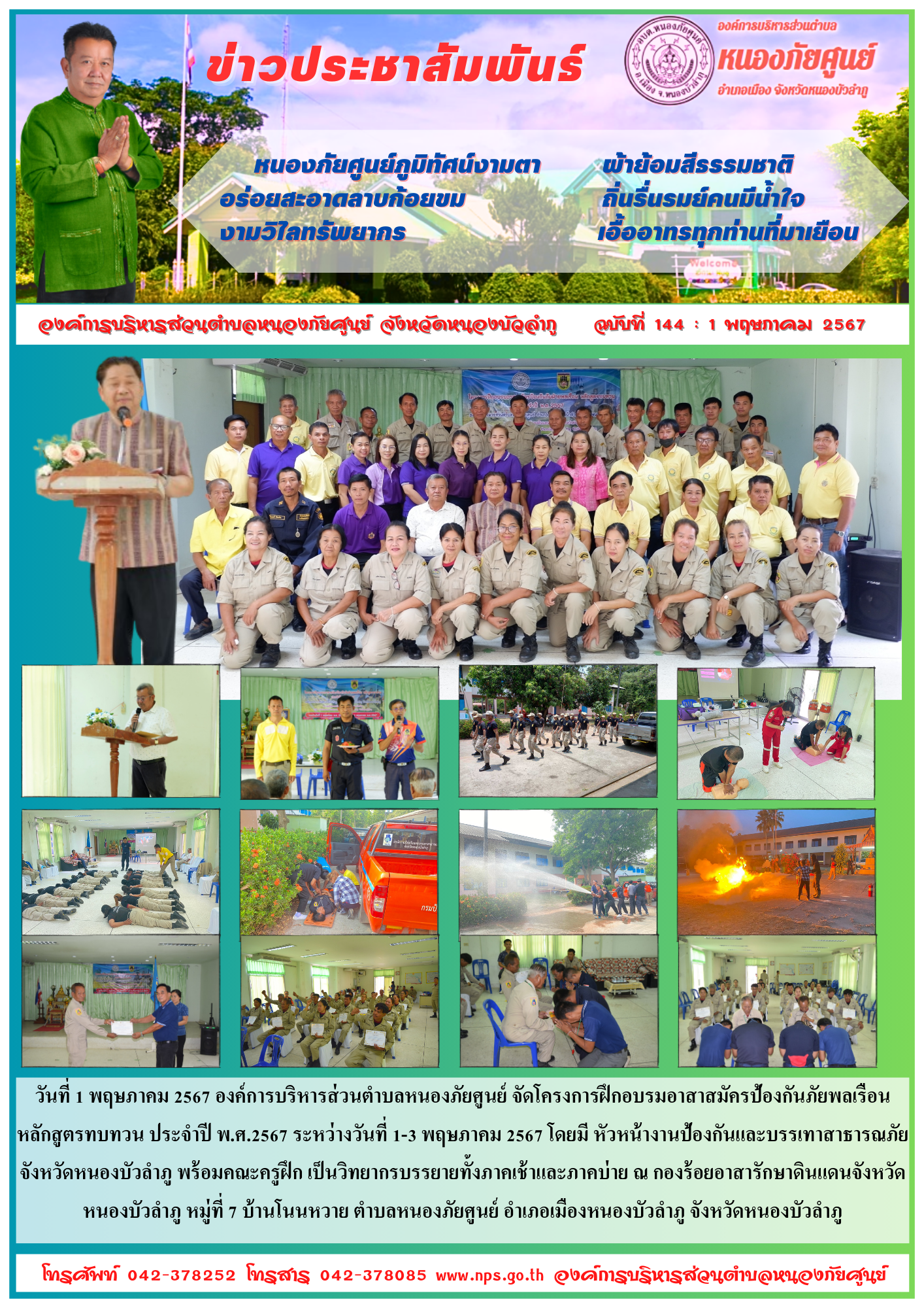 วันที่ 1 พฤษภาคม 2567 องค์การบริหารส่วนตำบลหนองภัยศูนย์ จัดโครงการฝึกอบรมอาสาสมัครป้องกันภัยพลเรือน หลักสูตรทบทวน ประจำปี พ.ศ.2567 ระหว่างวันที่ 1-3 พฤษภาคม 2567 โดยมี... [1 พฤษภาคม 2567]