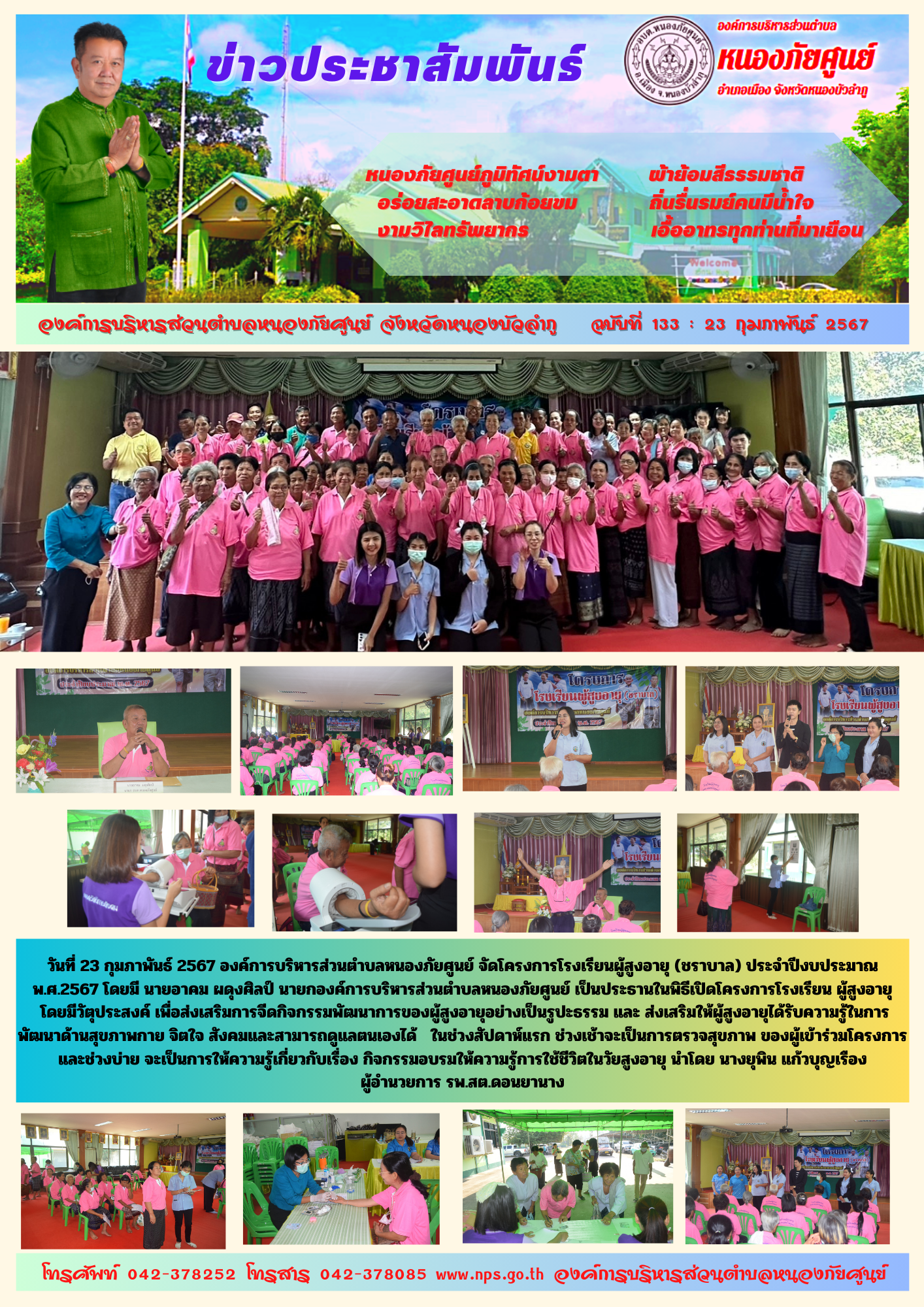วันที่ 23 กุมภาพันธ์ 2567 องค์การบริหารส่วนตำบลหนองภัยศูนย์ จัดโครงการโรงเรียนผู้สูงอายุ (ชราบาล) ประจำปีงบประมาณ พ.ศ.2567 โดยมี นายอาคม ผดุงศิลป์ นายกองค์การบริหารส่วนตำบลหนองภัยศูนย์... [23 กุมภาพันธ์ 2567]