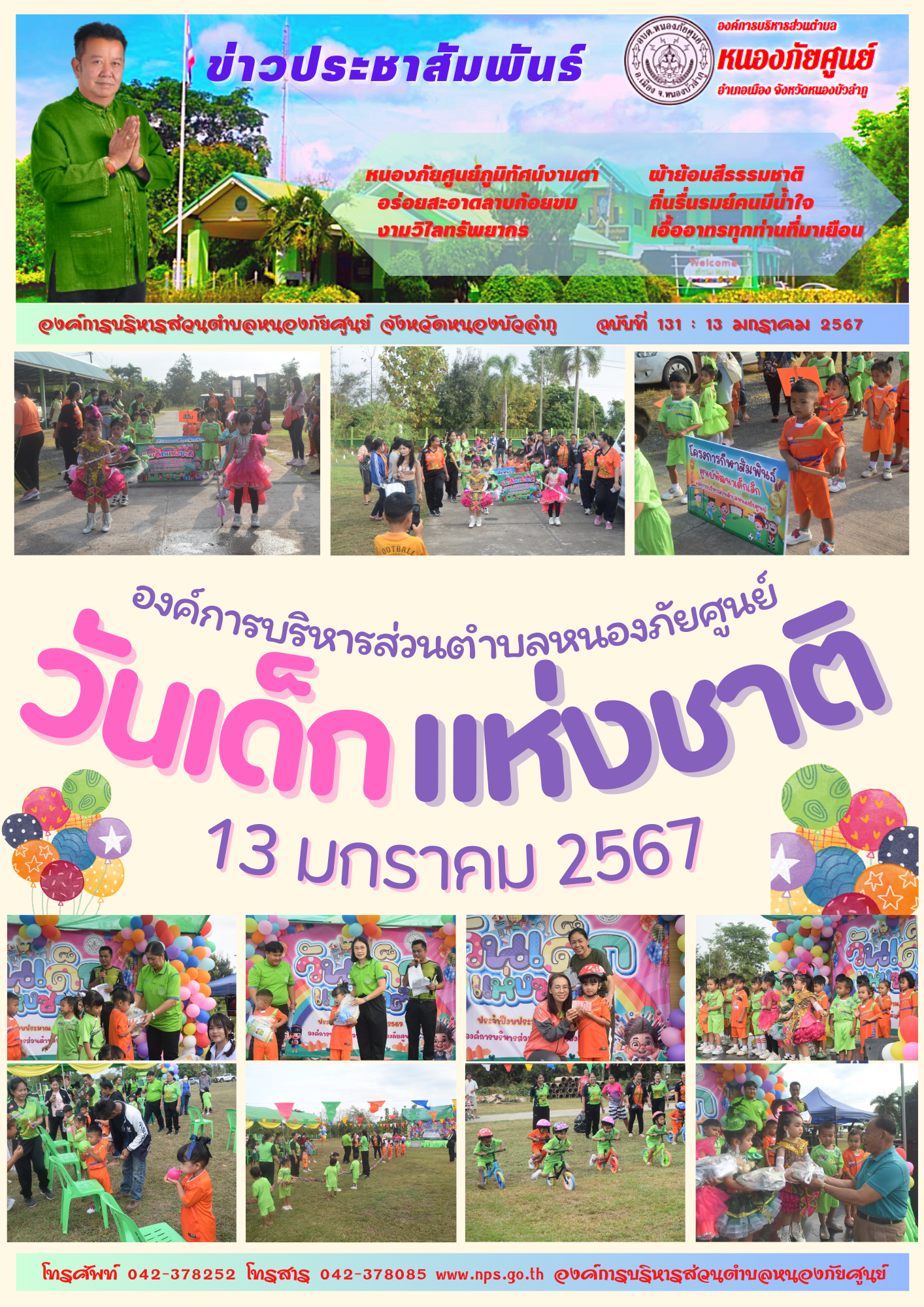 วันที่ 13 มกราคม 2567 องค์การบริหารส่วนตำบลหนองภัยศูนย์จัดกิจกรรม วันเด็กแห่งชาติ เพื่อมอบความสุข..ปลุกความคิด..สร้างสรรค์ มุ่งเน้นให้เด็กและเยาวชนเป็น คนเก่ง คนดี สามัคคี... [15 มกราคม 2567]