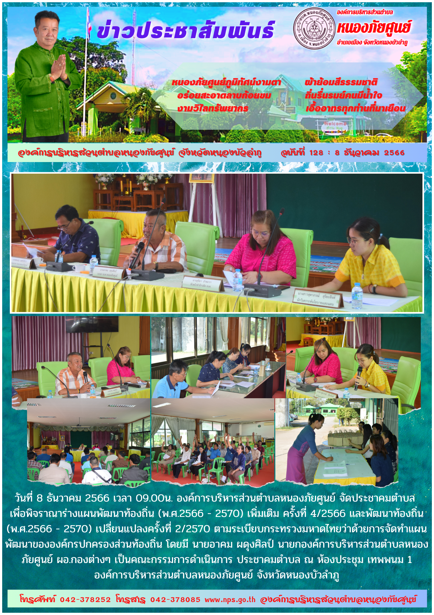 วันที่ 8 ธันวาคม 2566 เวลา 09.00น. องค์การบริหารส่วนตำบลหนองภัยศูนย์ จัดประชาคมตำบล เพื่อพิจราณาร่างแผนพัฒนาท้องถิ่น (พ.ศ.2566 - 2570) เพิ่มเติม ครั้งที่ 4/2566 และพัฒนาท้องถิ่น (พ.ศ.2566 - 2570) เปลี่ยนแปลงครั้งที่ 2/2570... [8 ธันวาคม 2566]