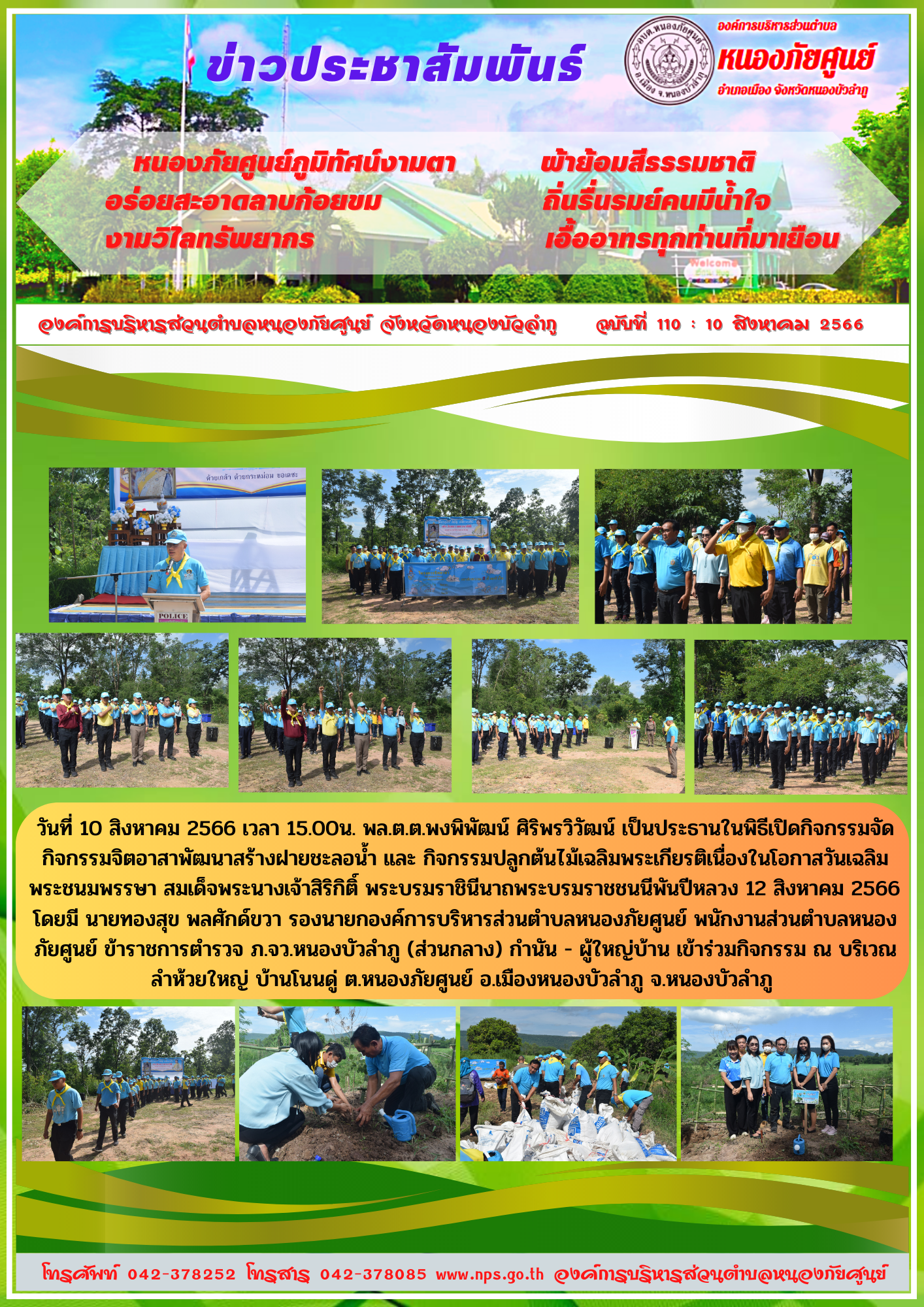 วันที่ 10 สิงหาคม 2566 เวลา 15.00น. พล.ต.ต.พงพิพัฒน์ ศิริพรวิวัฒน์ เป็นประธานในพิธีเปิดกิจกรรมจัดกิจกรรมจิตอาสาพัฒนาสร้างฝายชะลอน้ำ และ กิจกรรมปลูกต้นไม้เฉลิมพระเกียรติเนื่องในโอกาสวันเฉลิมพระชนมพรรษา... [11 สิงหาคม 2566]