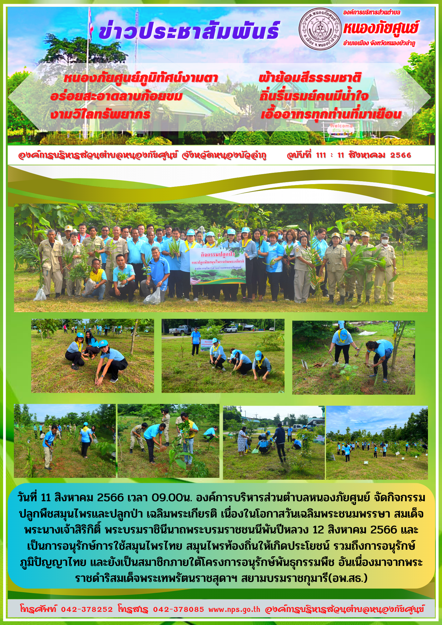 วันที่ 11 สิงหาคม 2566 เวลา 09.00น. องค์การบริหารส่วนตำบลหนองภัยศูนย์ จัดกิจกรรมปลูกพืชสมุนไพรและปลูกป่า เฉลิมพระเกียรติ เนื่องในโอกาสวันเฉลิมพระชนมพรรษา สมเด็จพระนางเจ้าสิริกิติ์... [11 สิงหาคม 2566]