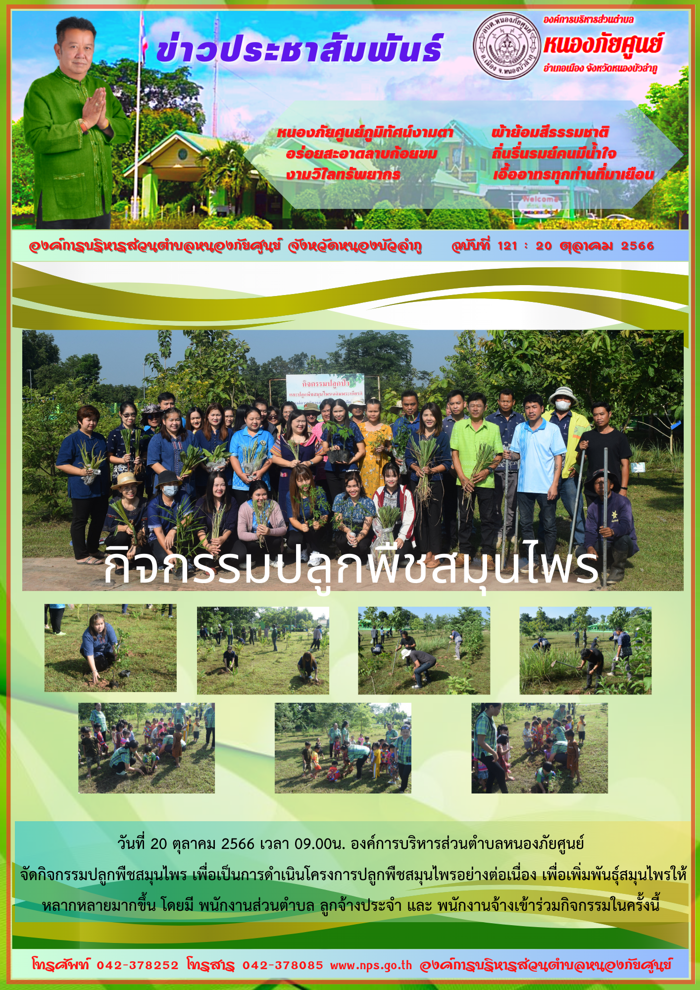 วันที่ 20 ตุลาคม 2566 เวลา 09.00น. องค์การบริหารส่วนตำบลหนองภัยศูนย์ จัดกิจกรรมปลูกพืชสมุนไพร เพื่อเป็นการดำเนินโครงการปลูกพืชสมุนไพรอย่างต่อเนื่อง เพื่อเพิ่มพันธุ์สมุนไพรให้หลากหลายมากขึ้น โดยมี พนักงานส่วนตำบล... [20 ตุลาคม 2566]