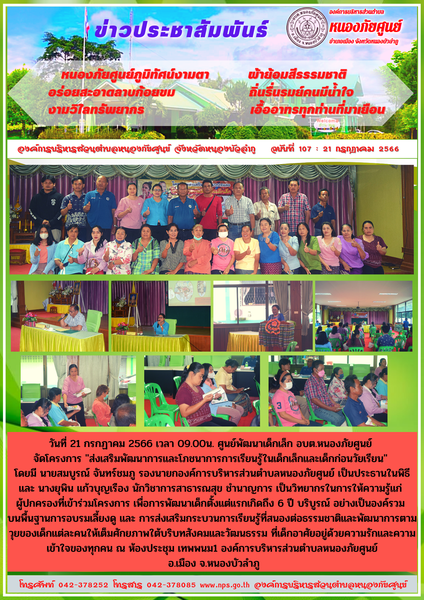 วันที่ 21 กรกฏาคม 2566 เวลา 09.00น. ศูนย์พัฒนาเด็กเล็ก อบต.หนองภัยศูนย์ จัดโครงการ "ส่งเสริมพัฒนาการและโภชนาการการเรียนรู้ในเด็กเล็กและเด็กก่อนวัยเรียน" โดยมี นายสมบูรณ์ จันทร์ชมภู... [21 กรกฎาคม 2566]