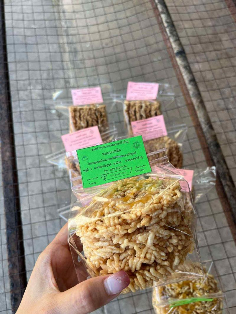 ▪️กลุ่มแม่บ้านเกษตรกรบ้านหนองภัยศูนย์ (ทำขนมนางเล็ด) ????ประวัติความเป็นมาเกิดจากความคิดของชุมชนในหมู่บ้าน การแปรรูปข้าวเหนียวที่เหลือนึ่งมาแปรรูปของกินอย่างอื่นที่เก็บไว้ได้นานมากขึ้น คือหลังจากที่นำมาอุ่นหรือนึ่งสุกแล้วนำมาคลุกเคล้ากับน้ำเชื่อ นำไปตากแห้ง และทอดกรอบ แล้วราดด้วยน้ำตาลที่เคี่ยวแล้วลงไปที่หน้าขนมนางเล็ด ????ประธานกลุ่ม นางบู่ เทพบุรี ????ที่ทำการกลุ่ม ร้านค้าชุมชนบ้านหนองภัยศูนย์เหนือ หมู่ที่ 9 ตำบลหนองภัยศูนย์ อำเภอเมือง จังหวัดหนองบัวลำภู ????เบอร์โทรศัพท์ 098-1024192