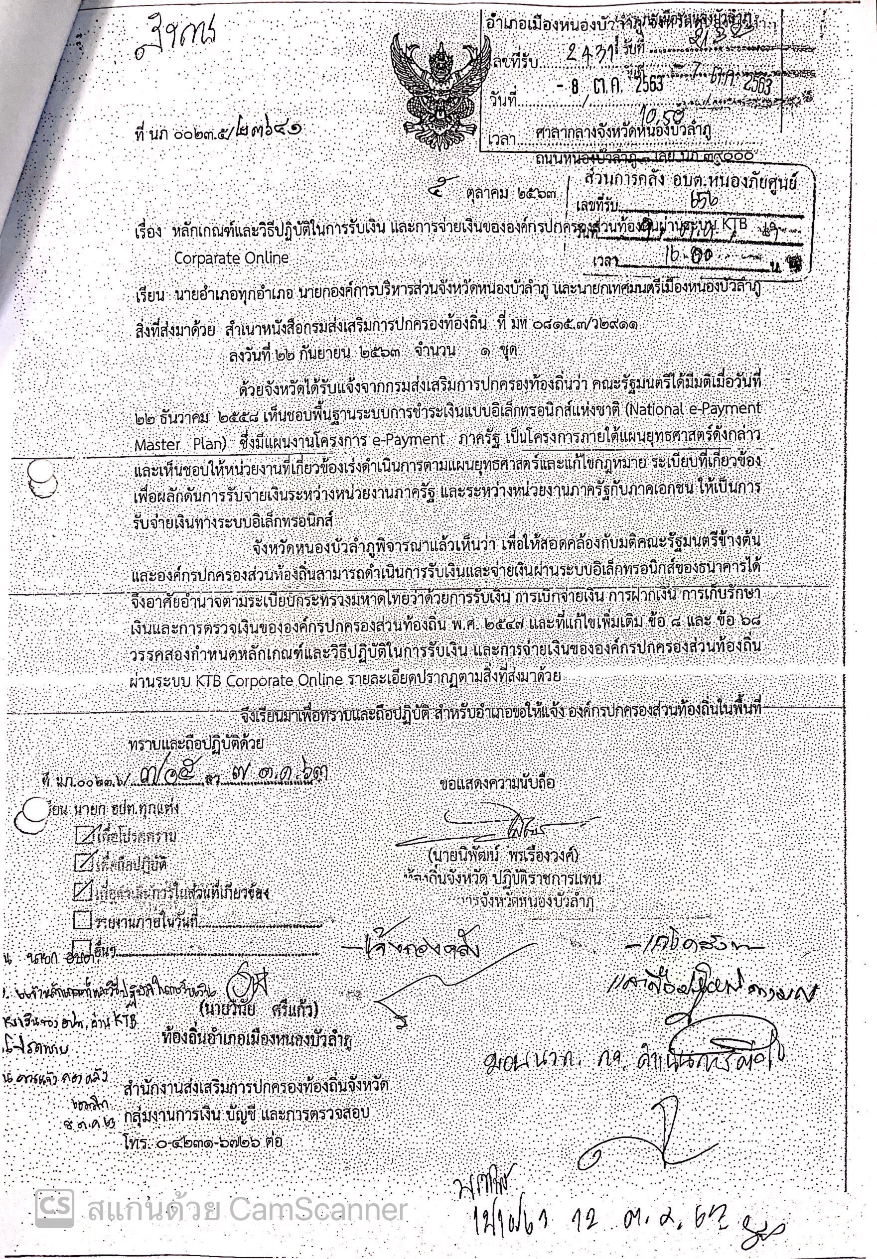ประกาศองค์การบริหารส่วนตำบลหนองภัยศูนย์ เรื่อง การรับชำระภาษีผ่านระบบ KTB Corporate Online
