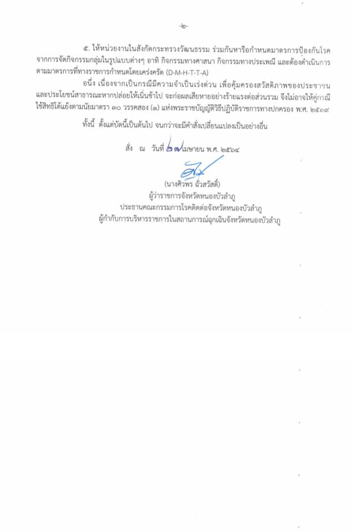 มาตรการเฝ้าระวัง ป้องกัน และควบคุมโรคติดเชื้อไวรัสโคโรน่า 2019 การระบาดระลอกใหม่ ในพื้นที่จังหวัดหนองบัวลำภู (แก้ไข/เพิ่มเติมครั้งที่ ๙)