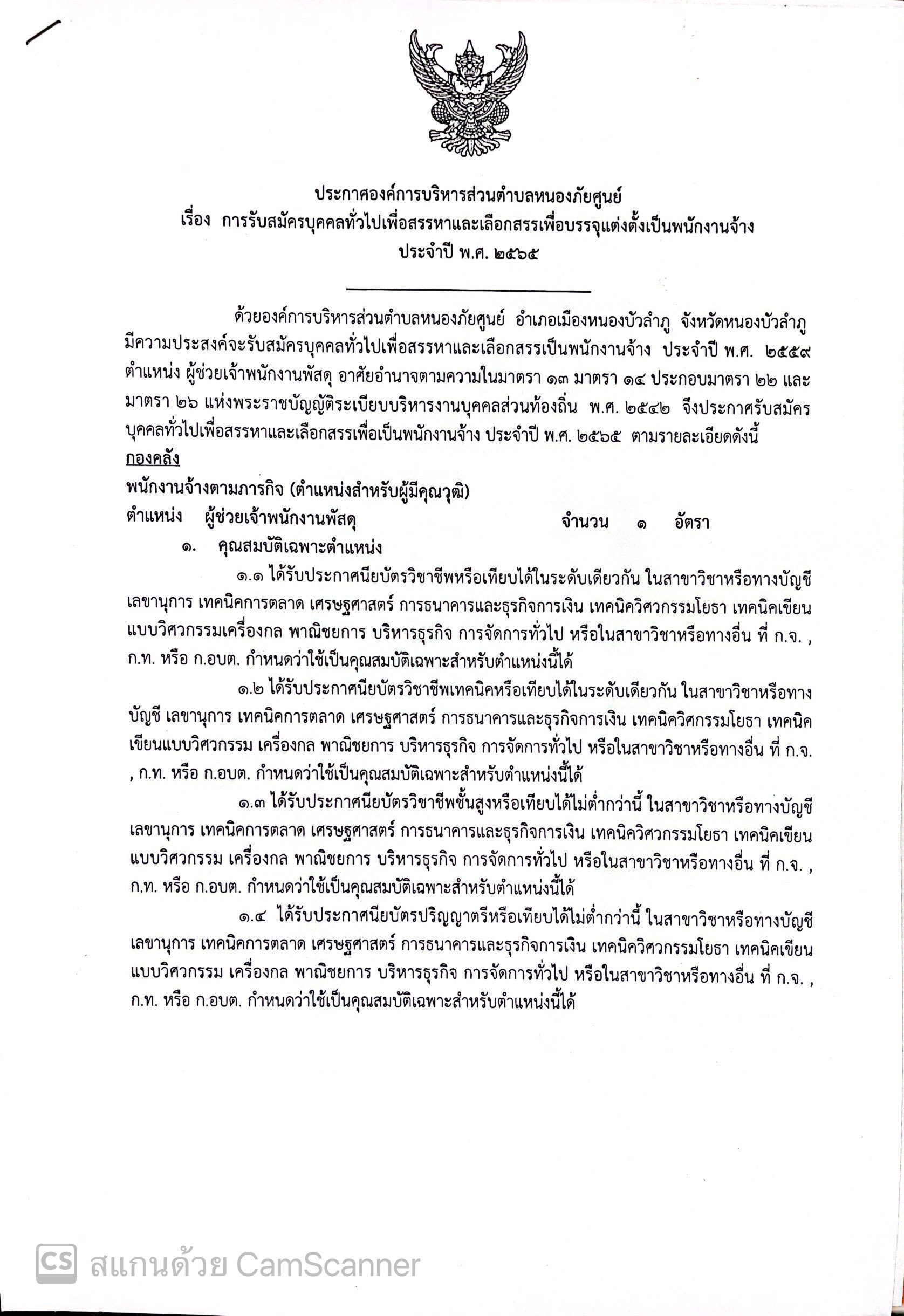 การรับสมัครบุคคลทั่วไปเพื่อสรรหาและเลือกสรรเพื่อบรรจุแต่งตั้งเป็นพนักงานจ้าง ประจำปี พ.ศ.2565
