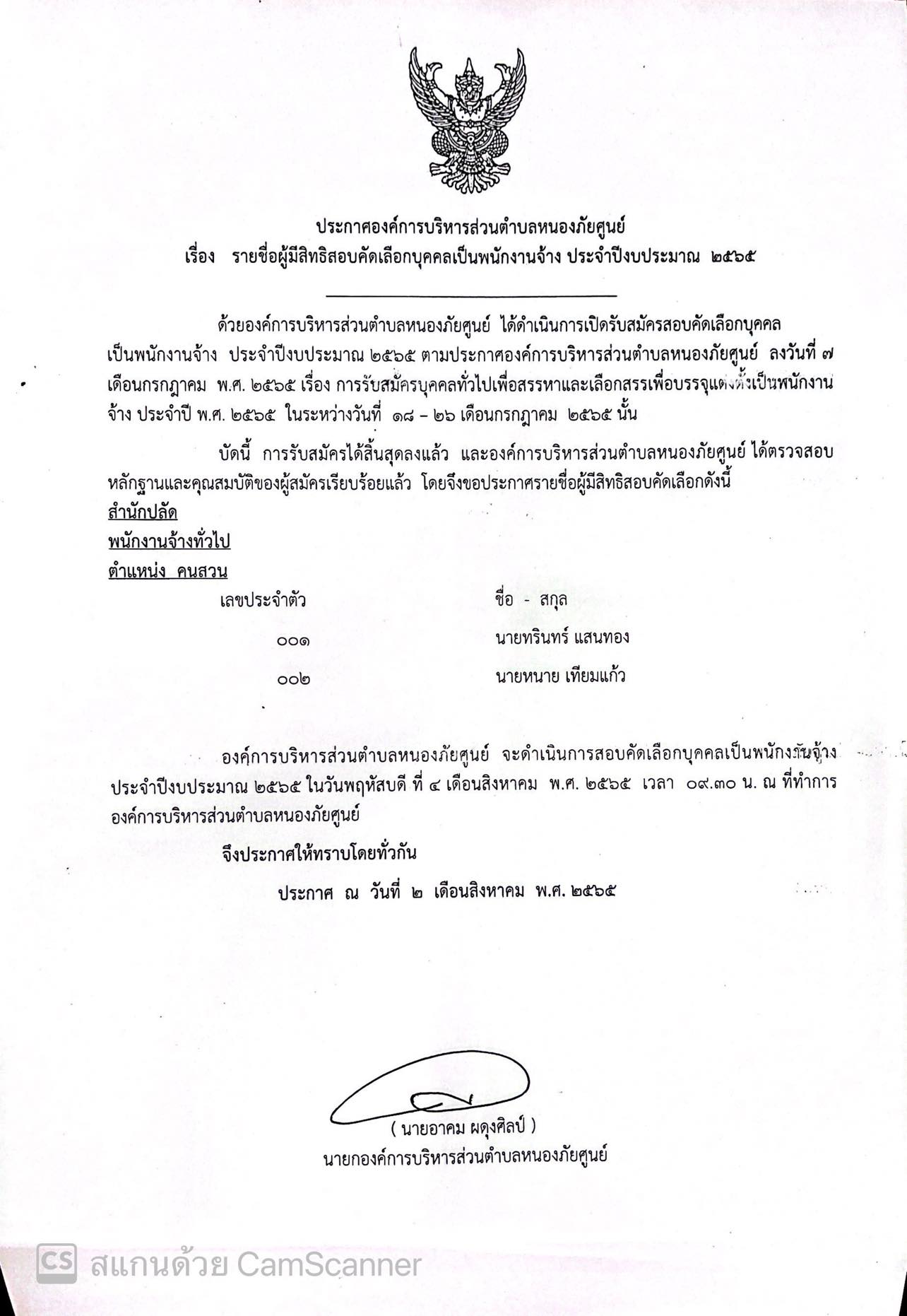 รายชื่อผู้มีสิทธิสอบคัดเลือกบุคคลเป็นพนักงานจ้าง ประจำปีงบประมาณ 2565