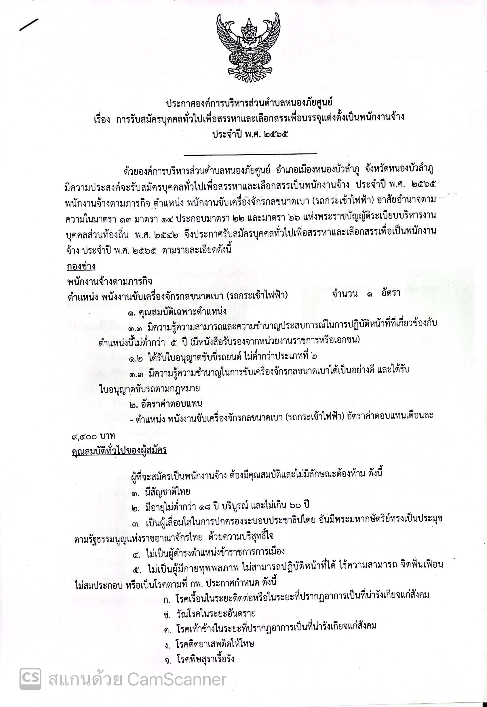 การรับสมัครบุคคลทั่วไปเพื่อสรรหาและเลือกสรรเพื่อบรรจุแต่งตั้งเป็นพนักงานจ้าง ประจำปี พ.ศ.2565