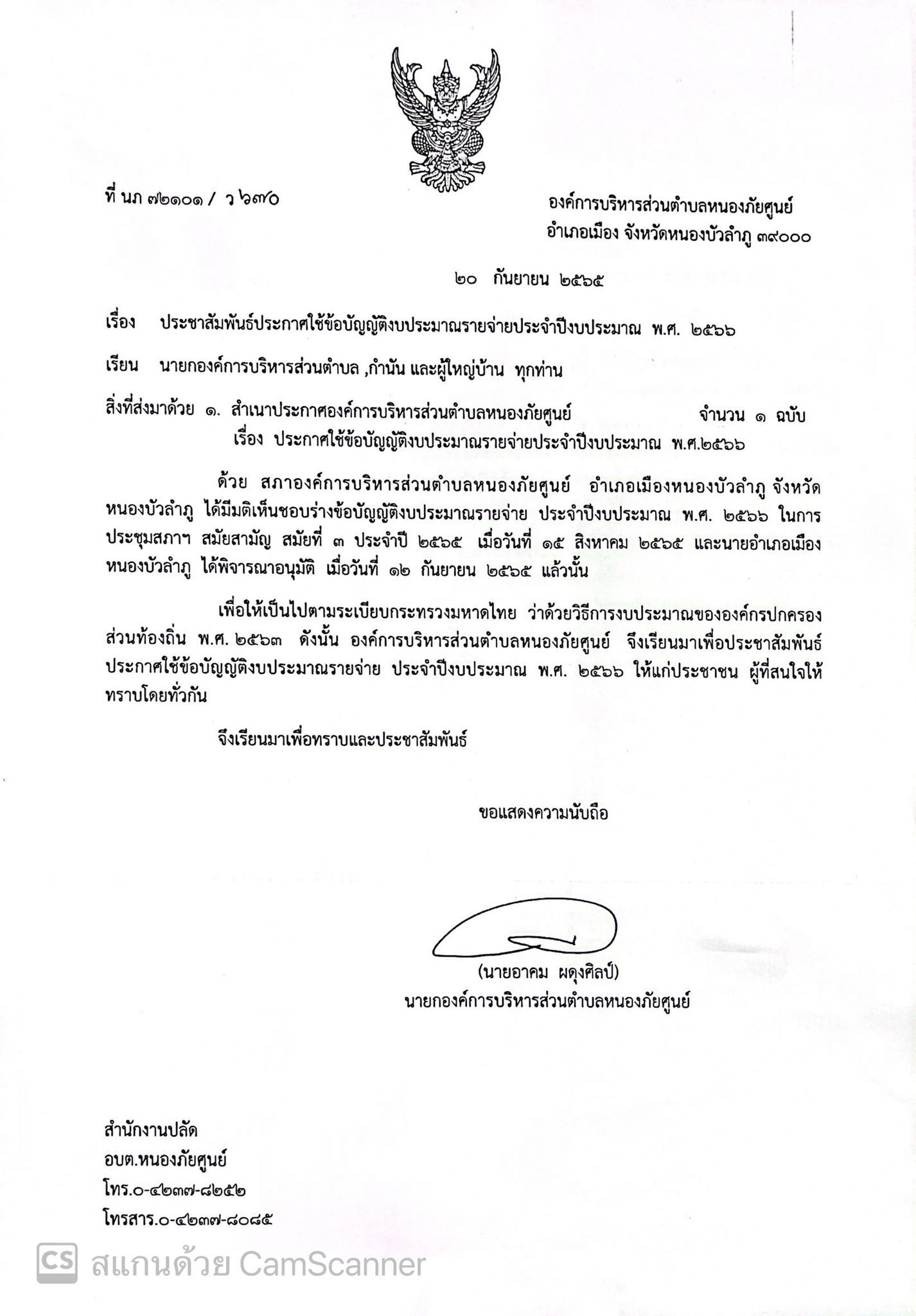 ประกาศใช้ข้อบัญญัติงบประมาณรายจ่ายประจำปีงบประมาณ พ.ศ. 2566