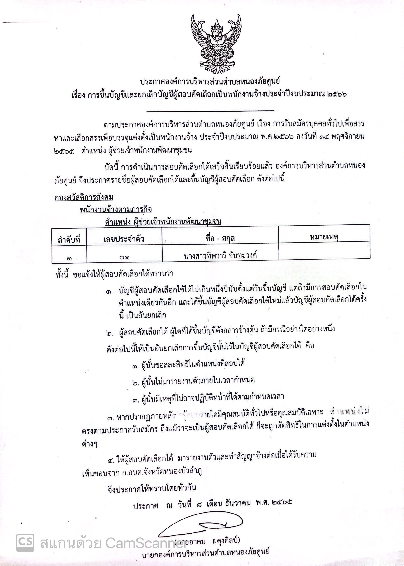 การขึ้นบัญชีและยกเลิกบัญชีผุ้สอบคัดเลือกเป็นพนักงานจ้างประจำปีงบประมาณ พ.ศ.๒๕๖๖