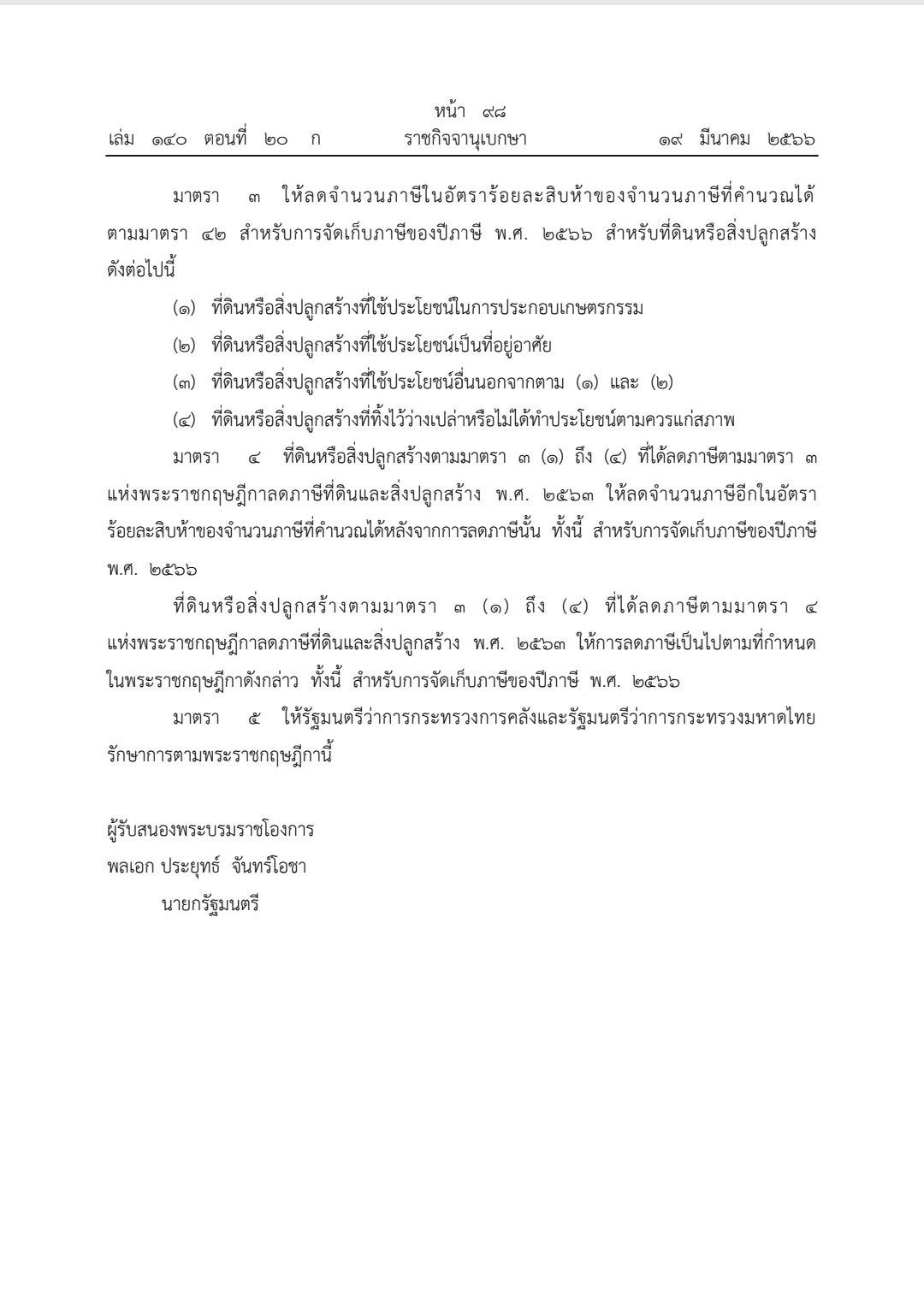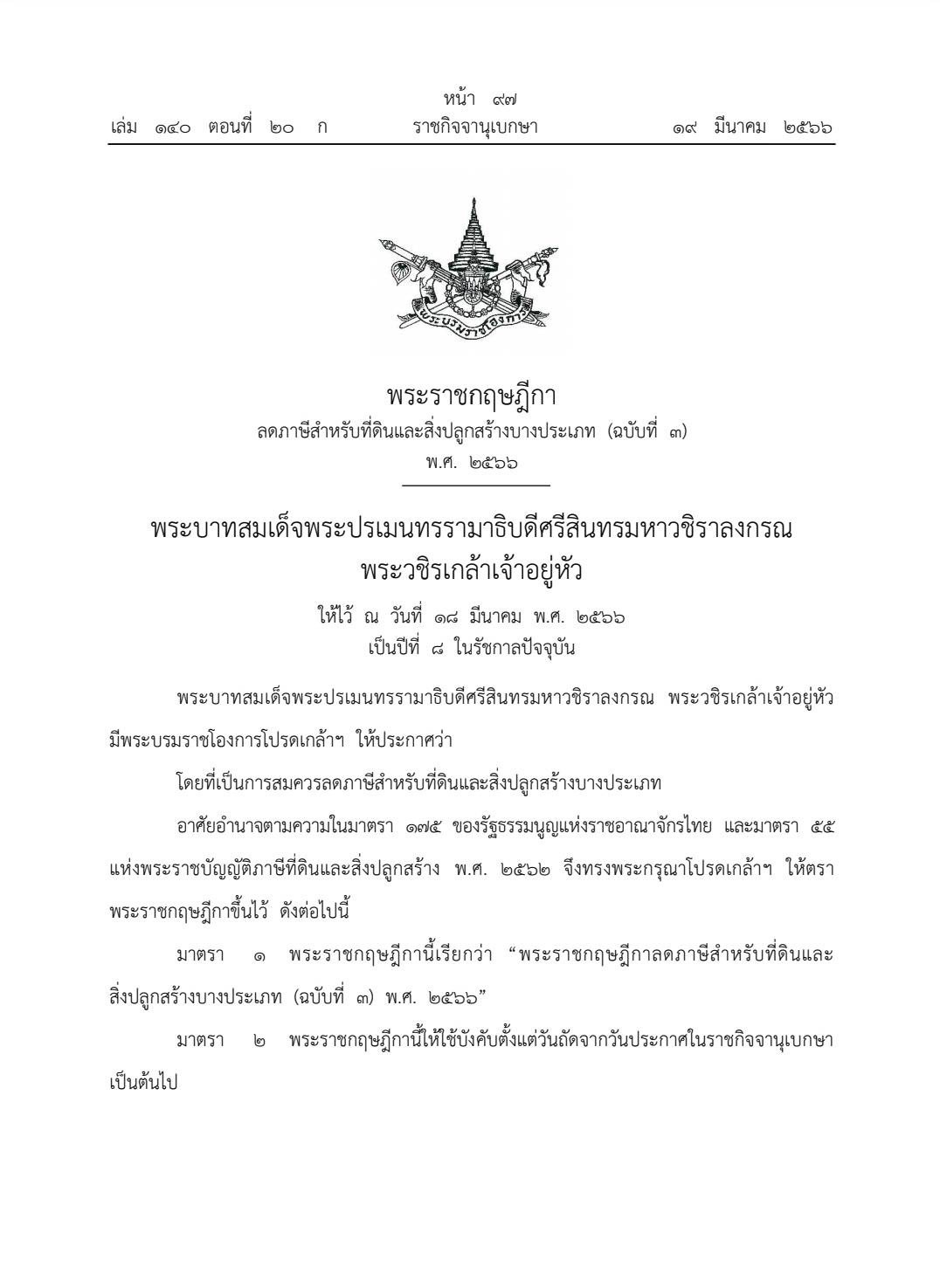 ประกาศลดภาษีสำหรับที่ดินและสิ่งปลูกสร้างบางประเภท (ฉบับที่ 3) พ.ศ. 2566