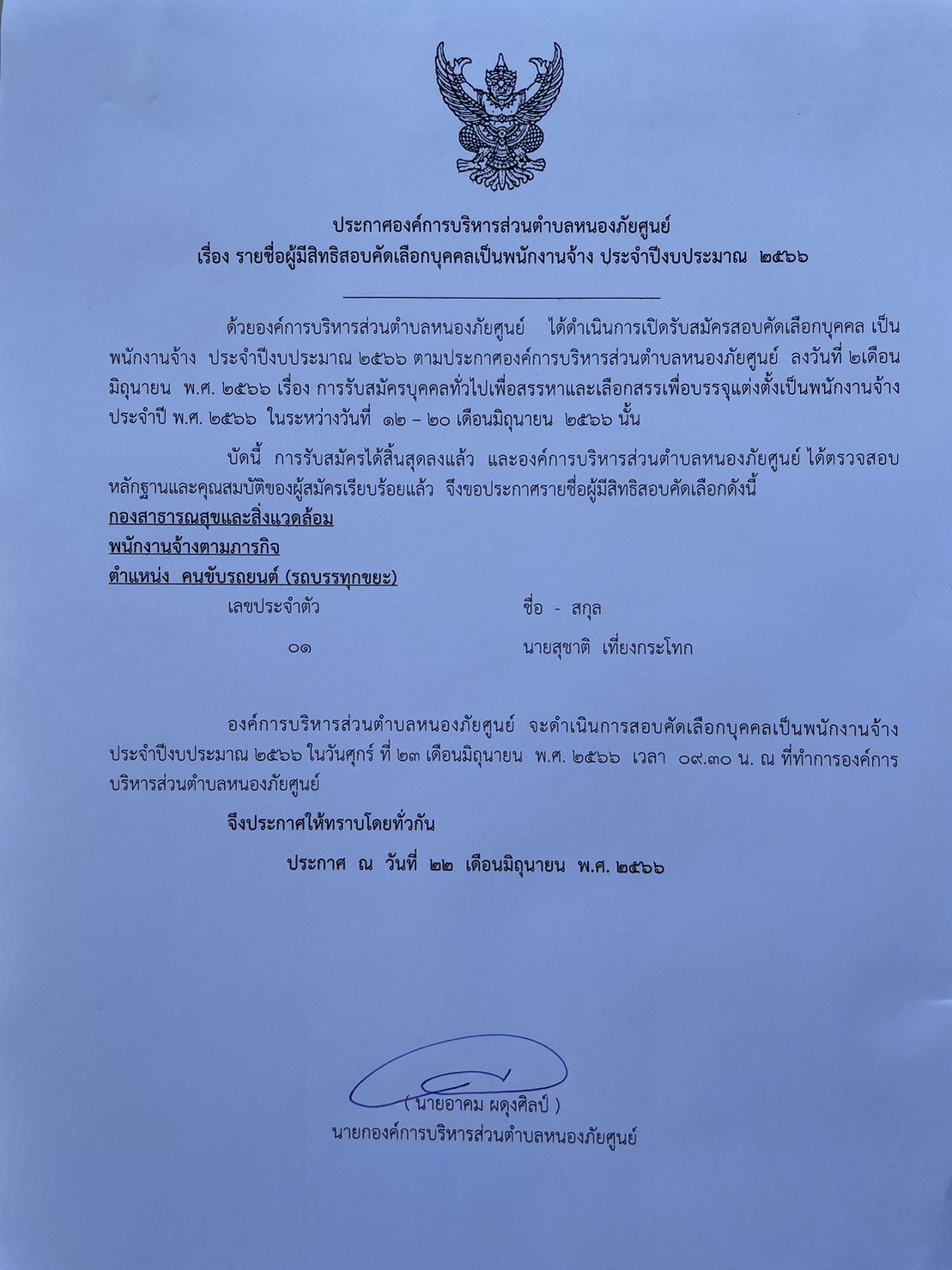 รายชื่อผู้มีสิทธิสอบคัดเลือกบุคคลเป็นพนักงานจ้าง ประจำปีงบประมาณ 2566