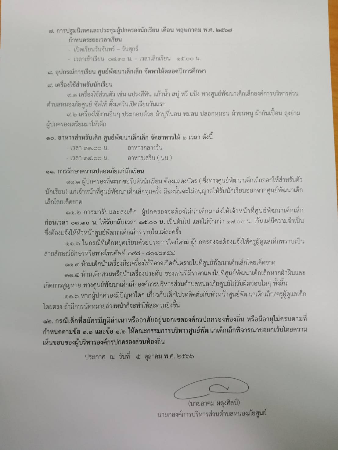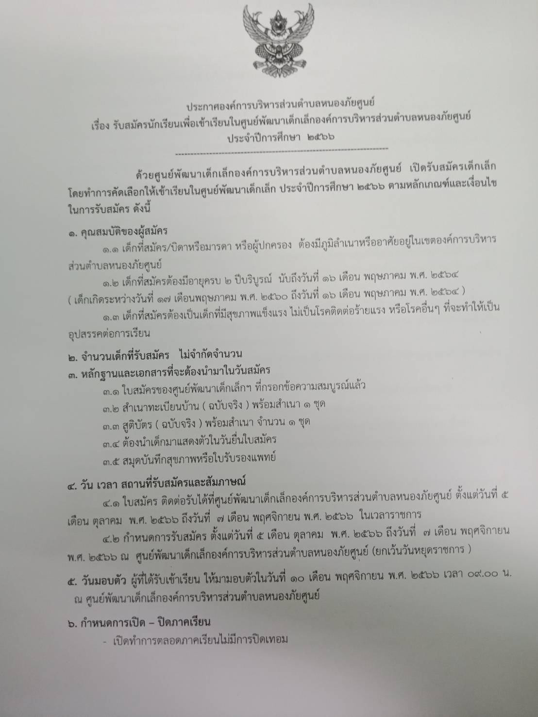 การรับสมัครนักเรียนเพื่อเข้าเรียนในศูนย์พัฒนาเด็กเล็กองค์การบริหารส่วนตำบลหนองภัยศูนย์ ประจำปีการศึกษา 2566