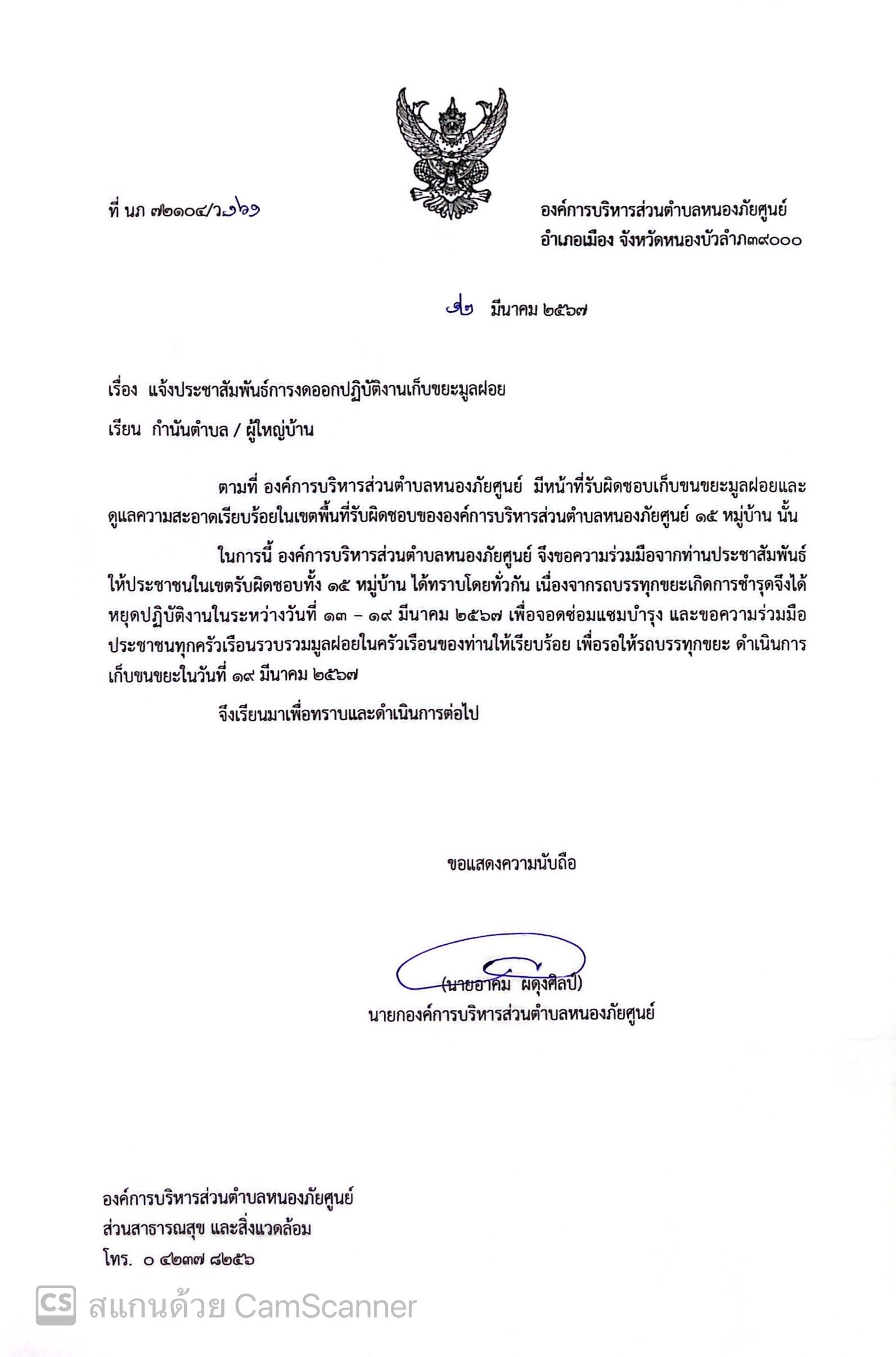แจ้งประชาสัมพันธ์การงดออกปฏิบัติงานเก็บขยะมูลฝอย