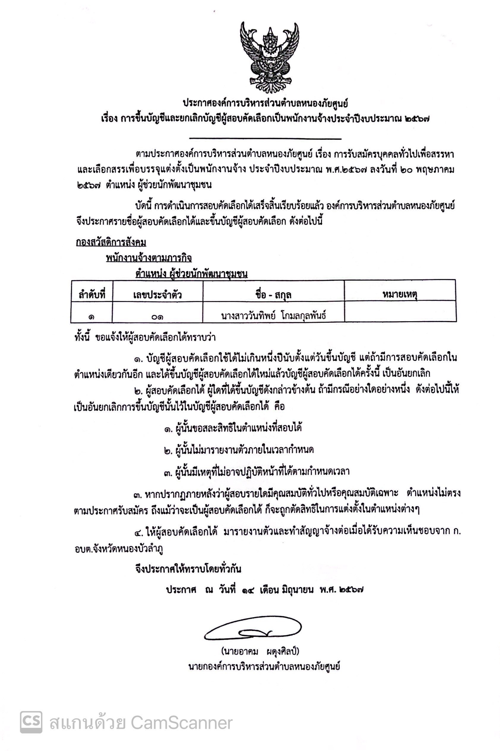 การขึ้นบัญชีและยกเลิกบัญชีผู้สอบคัดเลือกเป็นพนักงานจ้างประจำปีงบประมาณ 2567