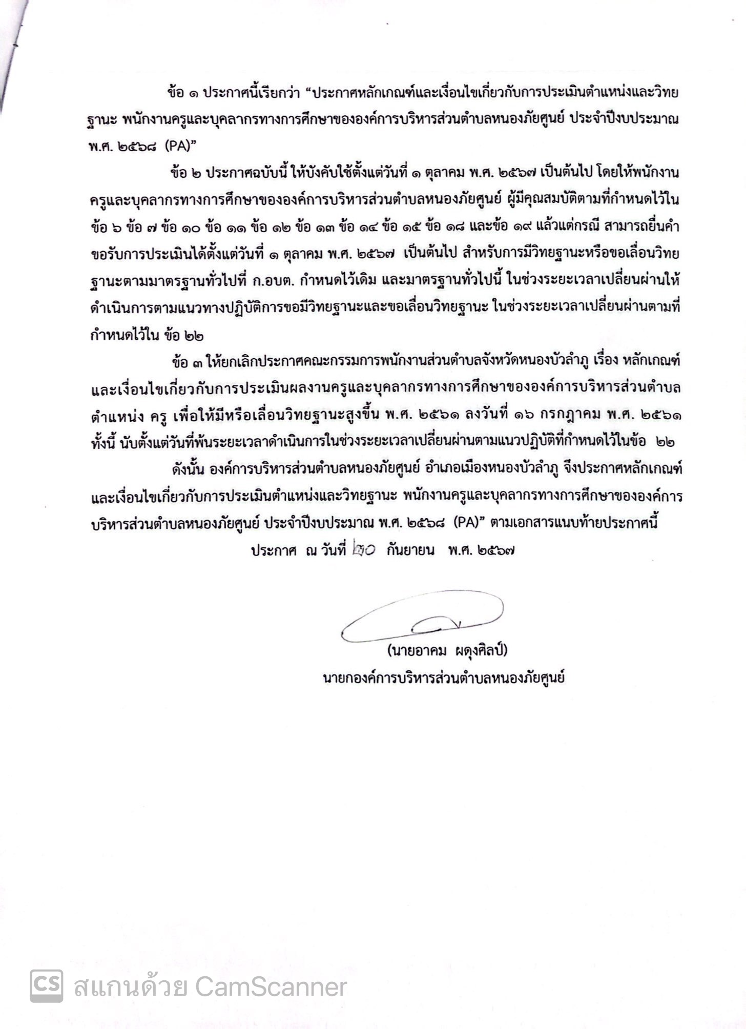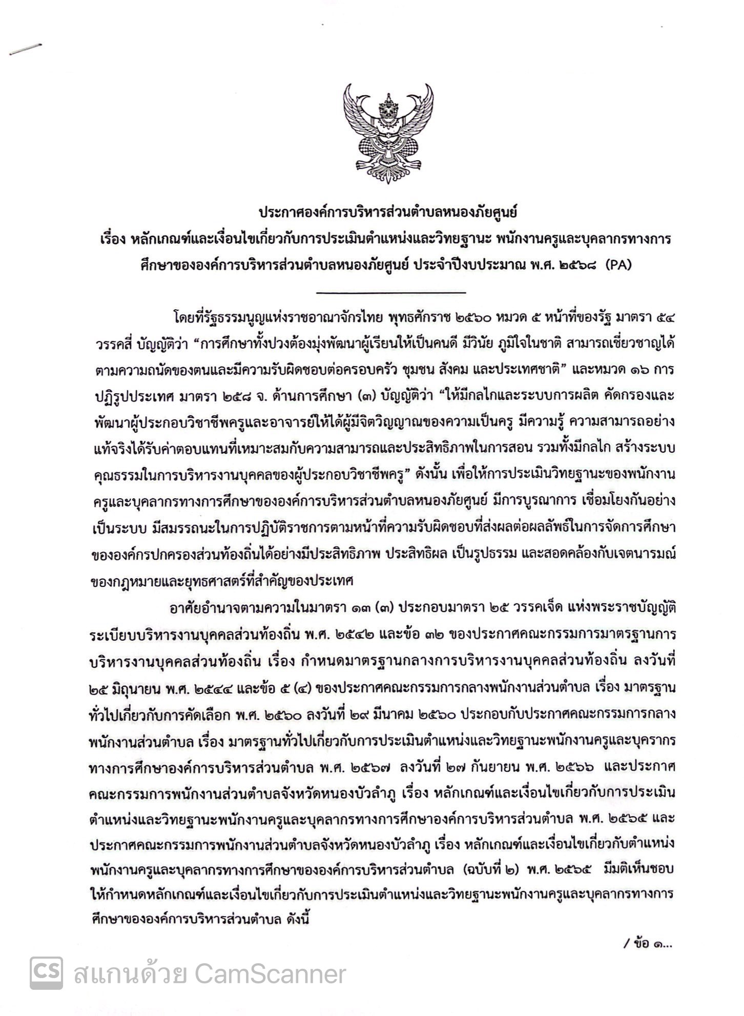 หลักเกณฑ์และเงื่อนไขเกี่ยวกับการประเมินตำแหน่งและวิทยฐานะ พนักงานครูและบุคลากรทางการศึกษาขององค์การบริหารส่วนตำบลหนองภัยศูนย์ ประจำปีงบประมาณ พ.ศ.๒๕๖๘