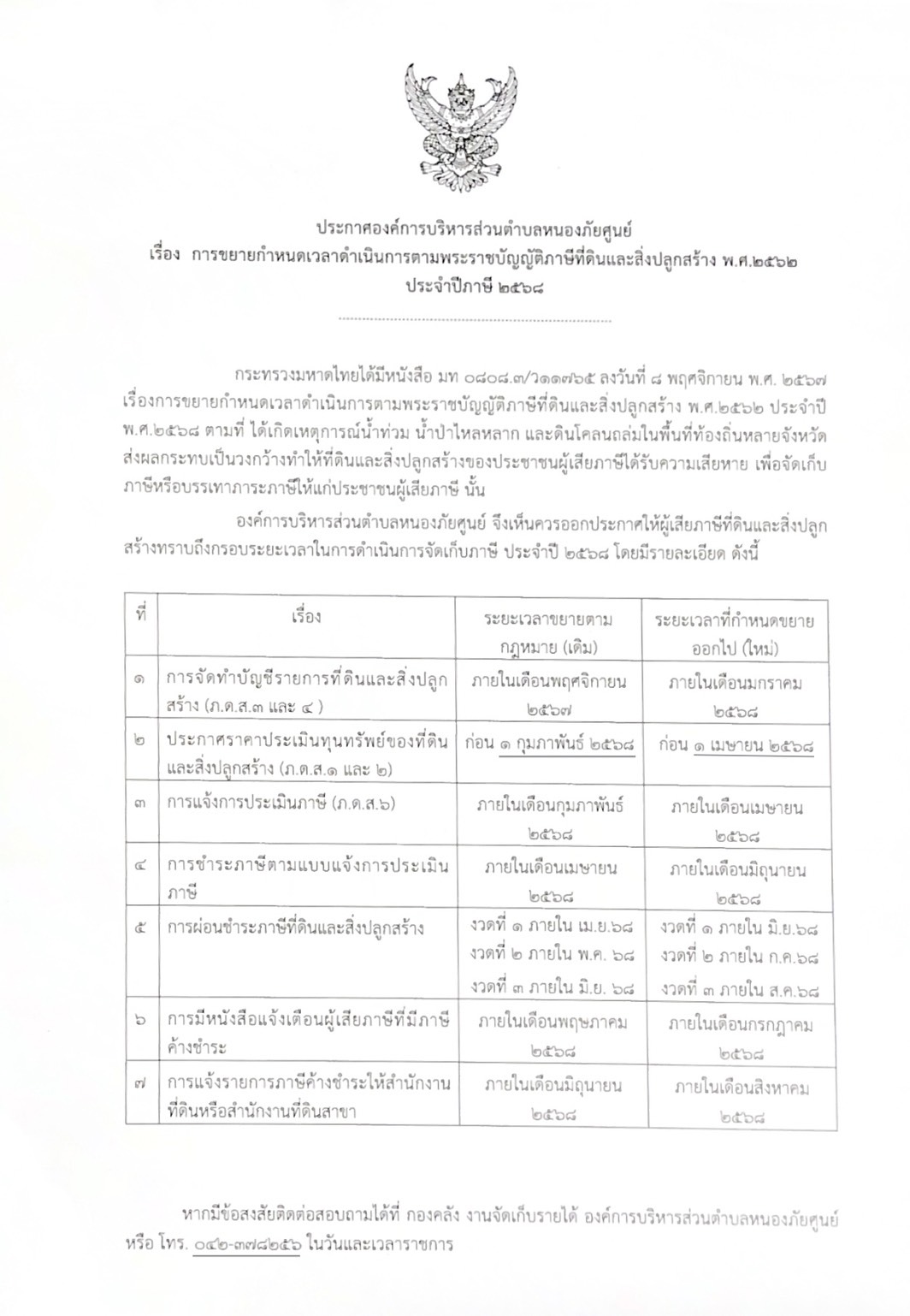 การขยายกำหนดเวลาดำเนินการตามพระราชบัญญัติภาษีที่ดินและสิ่งปลูกสร้าง พ.ศ.2562 ประจำปีภาษี 2568