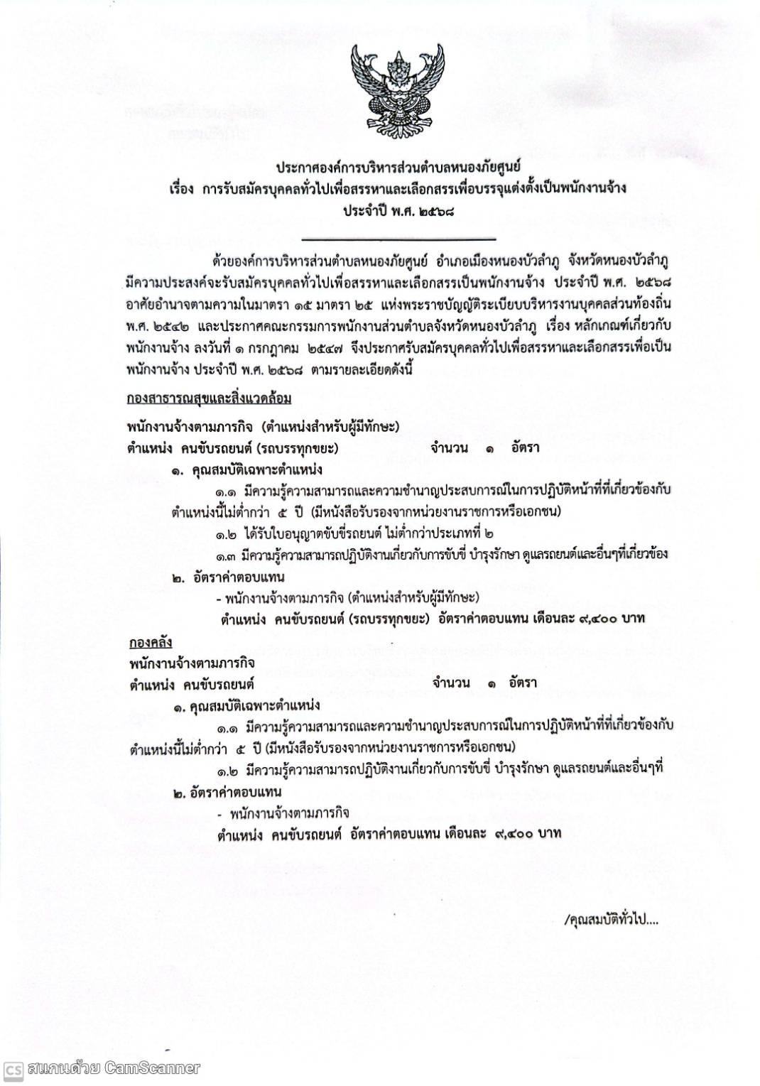การรับสมัครบุคคลทั่วไปเพื่อสรรหาและเลือกสรรเพื่อบรรจุแต่งตั้งเป็นพนักงานจ้าง ประจำปี พ.ศ.2568