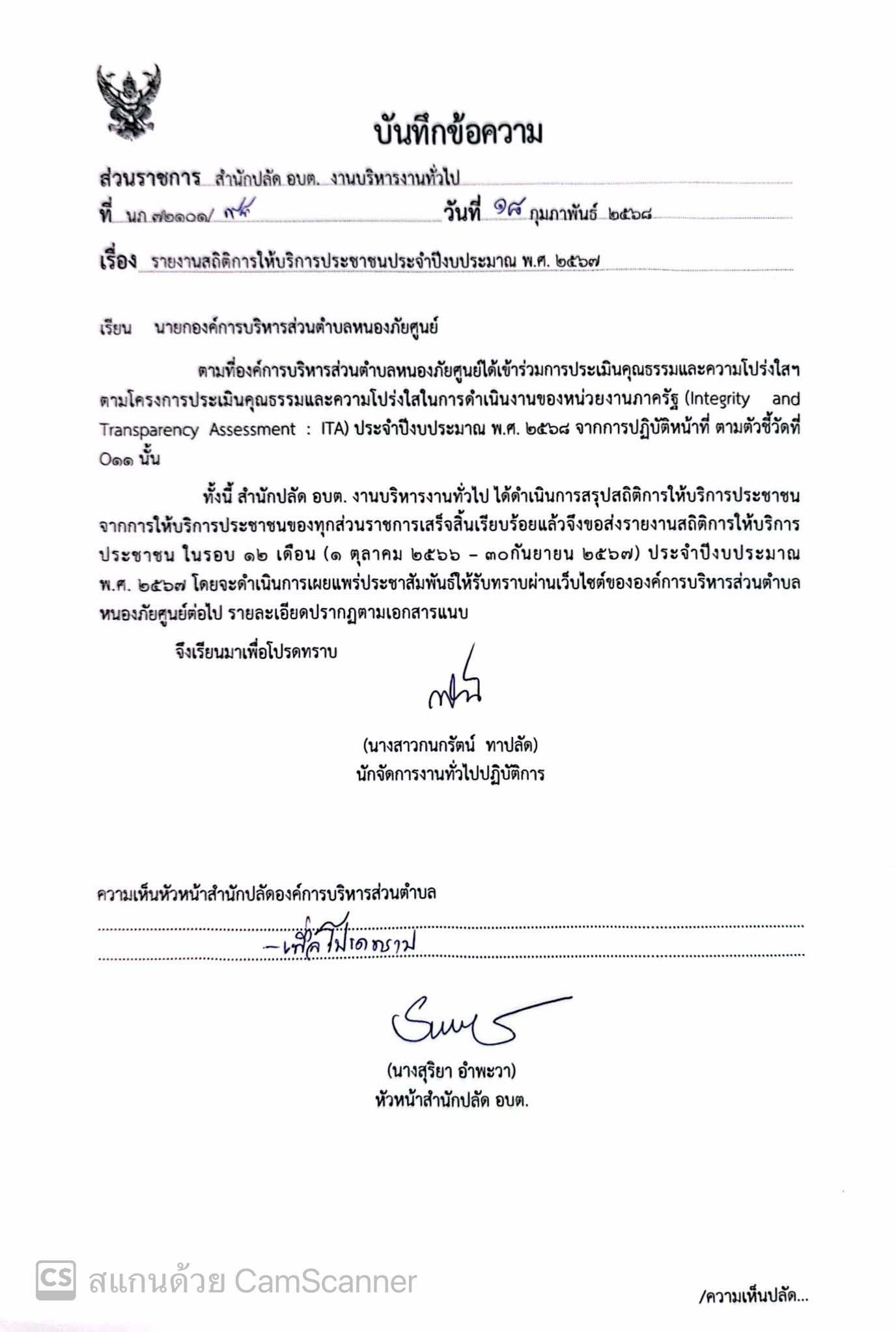 รายงานสถิติการให้บริการประชาชนประจำปีงบประมาณ พ.ศ.2567