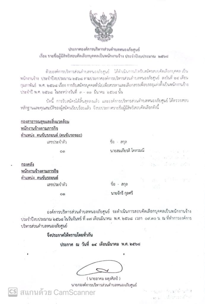 รายชื่อผู้มีสิทธิสอบคัดเลือกบุคคลเป็นพนักงานจ้าง ประจำปีงบประมาณ 2568