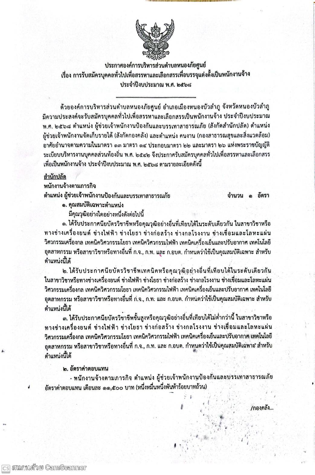 การรับสมัครบุคคลทั่วไปเพื่อสรรหาและเลือกสรรเพื่อบรรจุแต่งตั้งเป็นพนักงานจ้าง ประจำปีงบประมาณ พ.ศ.2568