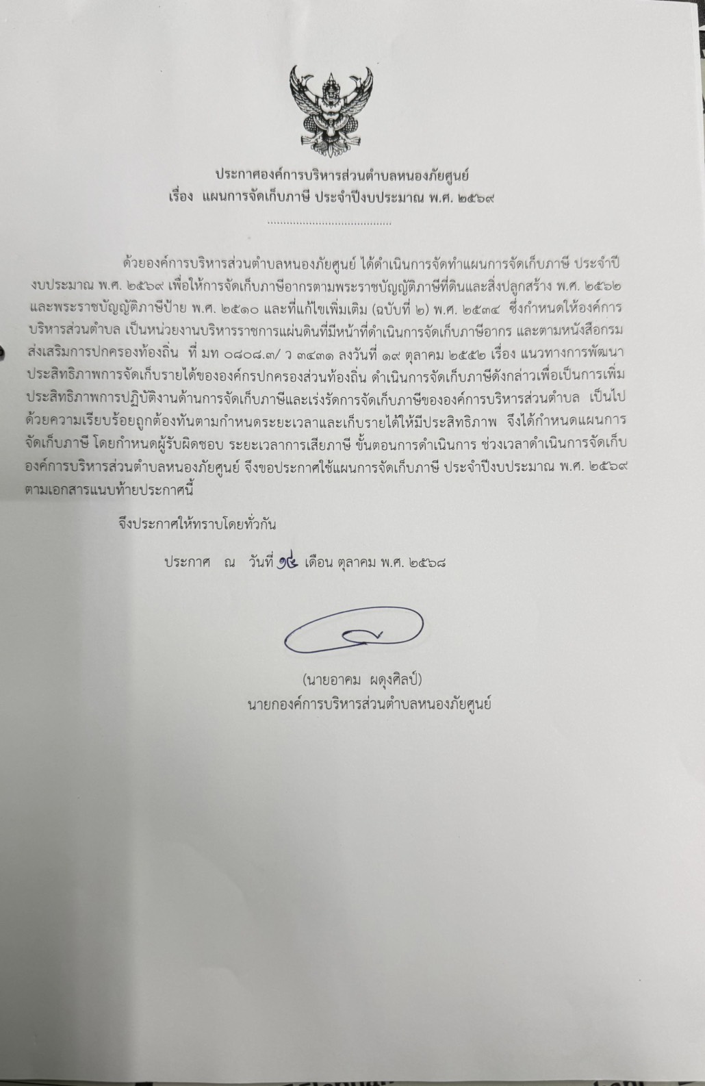 แผนการจัดเก็บภาษี ประจำปีงบประมาณ พ.ศ.๒๕๖๙
